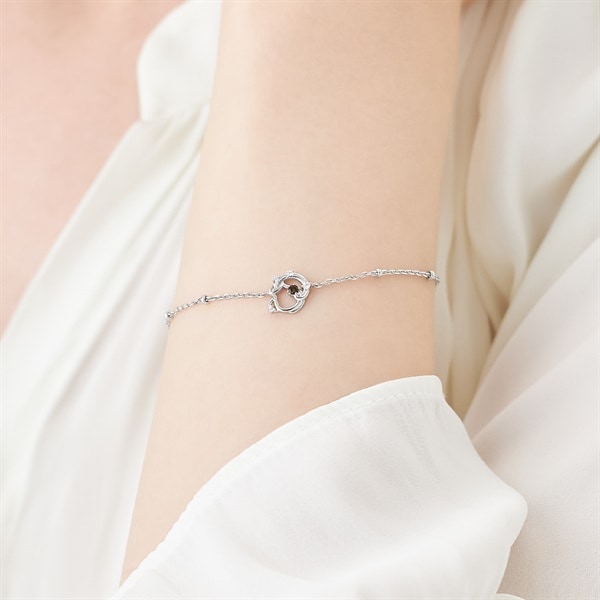 運気を高める星座石をあしらったZodiacシリーズ。みずがめ座をモチーフにデザインしたブレスレット。星をつなぐ星座と同じ配置にあしらわれたストーンがきらめきます。みずがめ座の星座石「スモーキークォーツ」は、ネガティブなエネルギーから身を守るとされており、お守りとしても身に着けられます。華やかなチェーンがアクセントとなるアイテムです。※天然石・天然素材を使用しているため、実際の色味や風合いが異なる場合がございます。