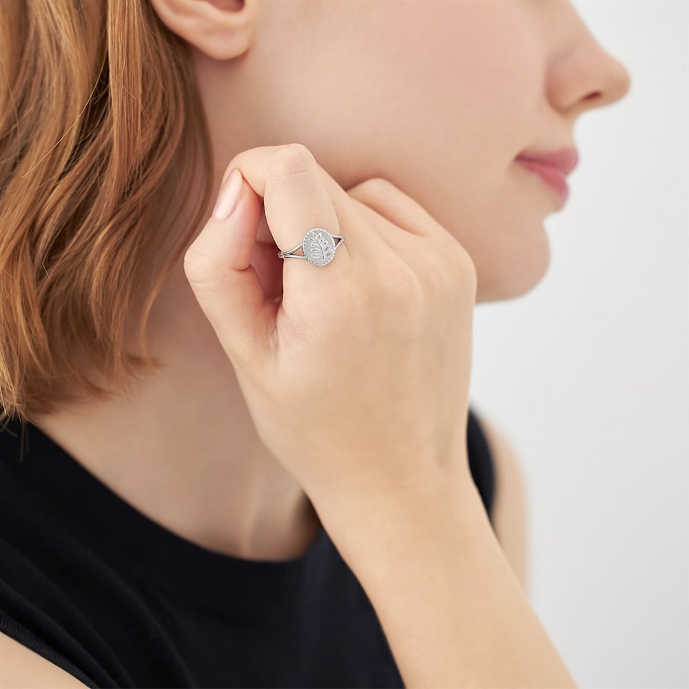 自然で自由にジュエリーの重ね着けを楽しんでいただける「Layered(レイヤード)」ジュエリーコレクション。「平和・繁栄」の象徴といわれているオリーブ模様が大人可愛いコインリング。シルバーカラーが落ち着いた印象です。存在感のあるフォルムなので、スタイリングのアクセントにおすすめです。※ボリューム(幅)のあるリングは、通常より着用時にサイズが小さく感じる場合がございます