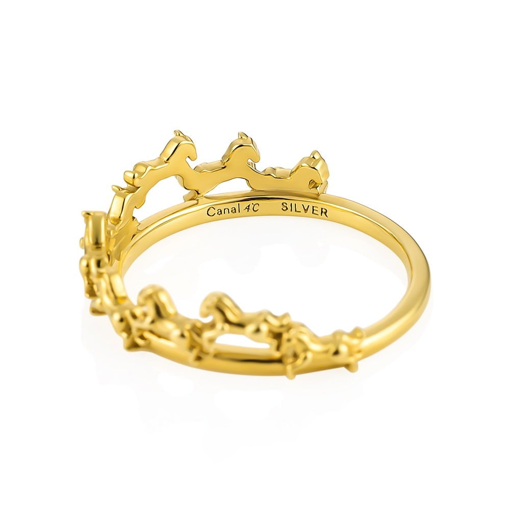 新年の幕開けにふさわしい、幸運を呼び込む-New Year Collection-「午年」にちなんだ駆ける馬がモチーフのリング。馬九行久(うまくいく)という願いを込めて9頭の馬が並んだデザイン。地金のみのカジュアルなデザインで、ストレートリングとの重ね着けもおすすめです。ご自身や大切な方の飛躍を願う、お守りジュエリーです。※ボリューム(幅)のあるリングは、通常より着用時にサイズが小さく感じる場合がございます。