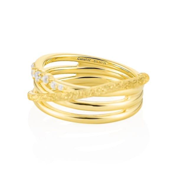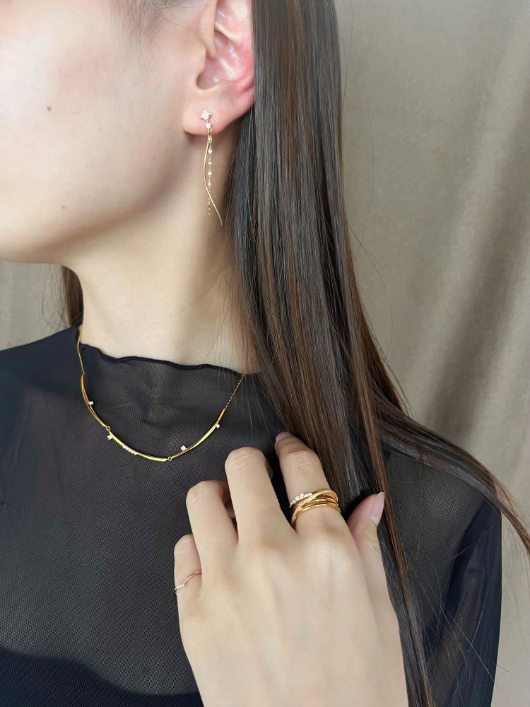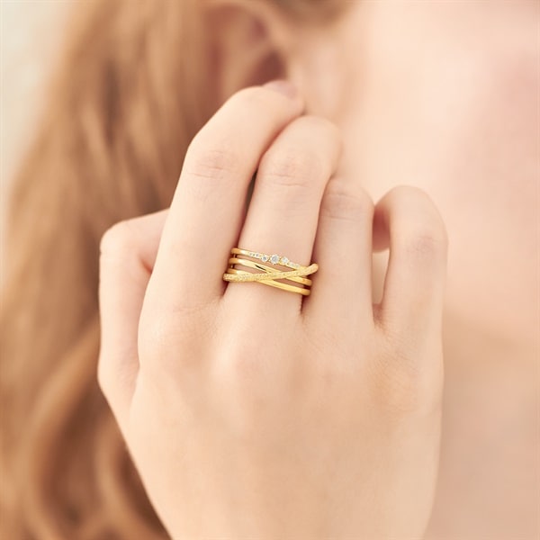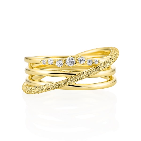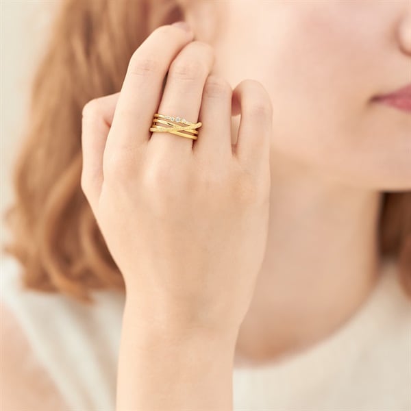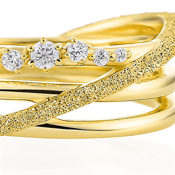 冬の特別なきらめきをテーマにしたジュエリーコレクションLight within me - 私の内なる輝き- 光の繊細なきらめきを表現した-Mellow-シリーズやわらかなラインが4本連なった華やかなリング。光り輝くダスト加工がほどこされ、身に着けるひとの手元を輝かせます。イエローゴールドカラーの華やかな輝きが指を包み、存在感をプラス。鏡面とスターダスト加工のコントラストが魅力的なデザインで、コーディネートのアクセントになる1本です。※ボリューム(幅)のあるリングは、通常より着用時にサイズが小さく感じる場合がございます。【限定ケース付き】こちらのジュエリーは、限定ケースに入れてお包みします。【先行予約特典】 こちらのジュエリーをご購入のお客さまに、Canal 4℃オリジナルウィンターベアをプレゼント。※ベアにお付けするリボンのカラーとメッセージを全16パターンからご選択いただけます。※先行予約期間終了後はオリジナルウィンターベアは3,080円(税込)でご購入いただけます。※ショッピングバッグ内にてお好きなノベルティをご選択ください。選択されていない場合はお付けすることができませんのであらかじめご了承ください。※先行予約枠は数に限りがございます。ご希望のジュエリーがお品切れの場合は通常販売をお待ちください。通常販売開始:10月23日(木)16時00分からメッセージカードの作成は、通常販売時のみとなります。