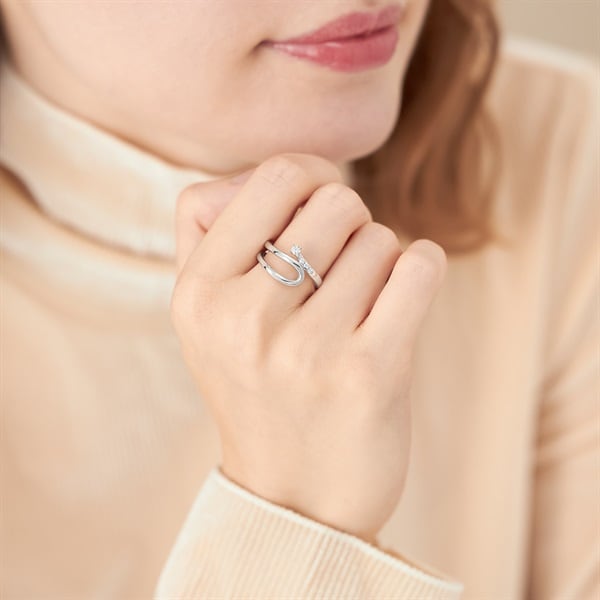 冬の特別なきらめきをテーマにしたジュエリーコレクションLight within me - 私の内なる輝き- 光の繊細なきらめきを表現した-Mellow-シリーズゆったりとしたラインが指を包み込むリング。右から覗くストーンは光の輝きを表現しており、手元のアクセントになるデザイン。しっかりとしたボリューム感がありつつも抜け感があり、着けやすさが魅力のアイテムです。※ボリューム(幅)のあるリングは、通常より着用時にサイズが小さく感じる場合がございます。【限定ケース付き】こちらのジュエリーは、限定ケースに入れてお包みします。【先行予約特典】 こちらのジュエリーをご購入のお客さまに、Canal 4℃オリジナルウィンターベアをプレゼント。※ベアにお付けするリボンのカラーとメッセージを全16パターンからご選択いただけます。※先行予約期間終了後はオリジナルウィンターベアは3,080円(税込)でご購入いただけます。※ショッピングバッグ内にてお好きなノベルティをご選択ください。選択されていない場合はお付けすることができませんのであらかじめご了承ください。※先行予約枠は数に限りがございます。ご希望のジュエリーがお品切れの場合は通常販売をお待ちください。通常販売開始:10月23日(木)16時00分からメッセージカードの作成は、通常販売時のみとなります。