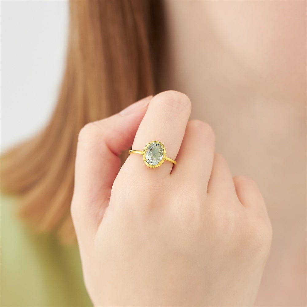 自然で自由にジュエリーの重ね着けを楽しんでいただける「Layered(レイヤード)」ジュエリーコレクション。グリーンカラーのクォーツリング。自然を感じさせ癒しや安らぎを与えるグリーンカラーが魅力です。繊細なリーフモチーフがクラシカルな印象に。ボリューム感のあるフォルムは、人差し指に着けてスタイリングのアクセントにおすすめです。※天然石を使用しているため、実際の色味や風合いが異なる場合がございます。※ボリューム(幅)のあるリングは、通常より着用時にサイズが小さく感じる場合がございます