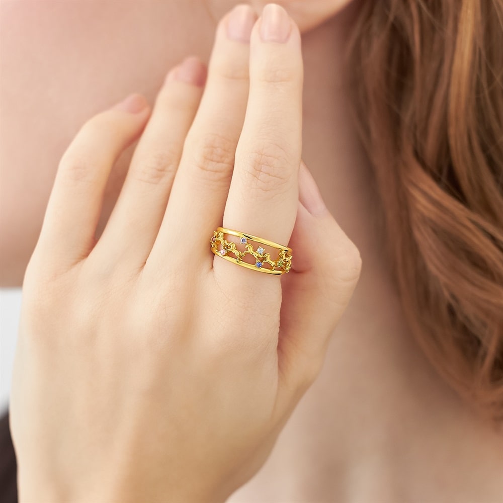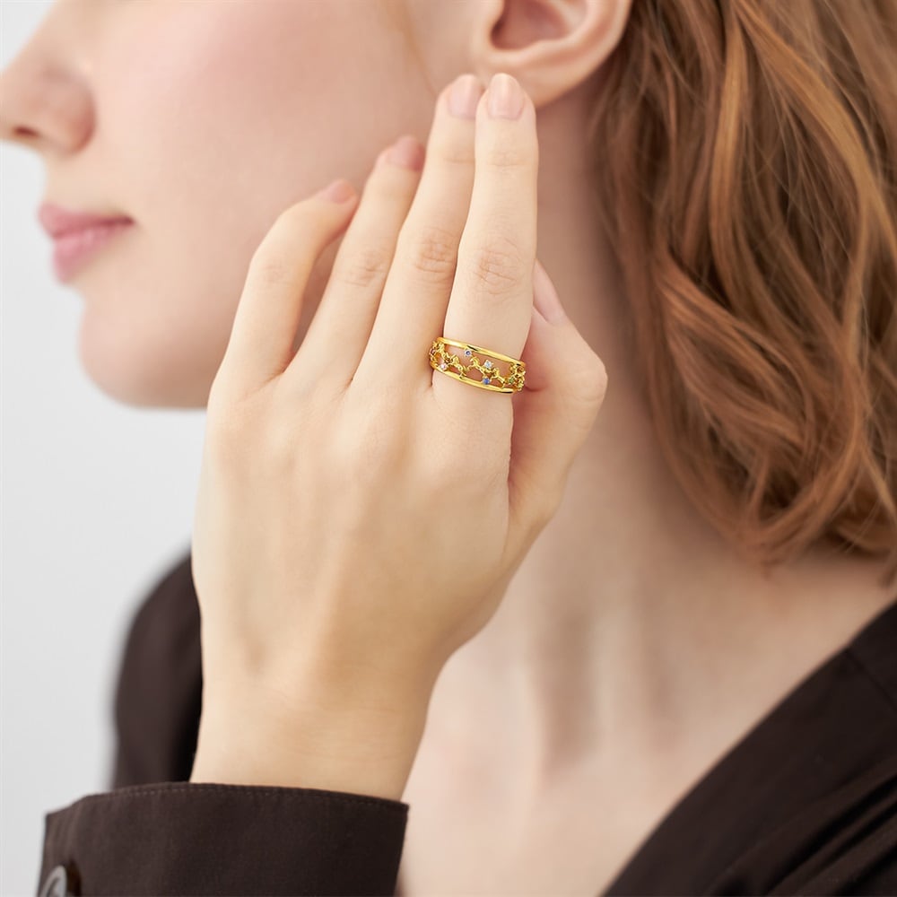 新年の幕開けにふさわしい、幸運を呼び込む-New Year Collection-「午年」にちなんだ駆ける馬がモチーフのリング。馬九行久(うまくいく)という願いを込めて9頭の馬が並んだデザイン。幸運の象徴であるレインボーカラーのストーンが散りばめられ、手元を華やかに彩ります。ご自身や大切な方の飛躍を願う、お守りジュエリーです。※ボリューム(幅)のあるリングは、通常より着用時にサイズが小さく感じる場合がございます。