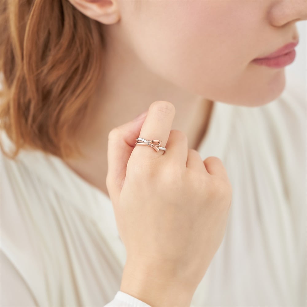新年の幕開けにふさわしい、幸運を呼び込む-New Year Collection-平和を意味する「紅白」のコンビカラーが魅力のリング。紅は「喜び」、白は「始まり」を意味し、お守りとしても身に着けられます。水引きをイメージしたリボンモチーフが手元のアクセントに。ご自身や大切な方の飛躍を願う、特別なジュエリーです。※ボリューム(幅)のあるリングは、通常より着用時にサイズが小さく感じる場合がございます。