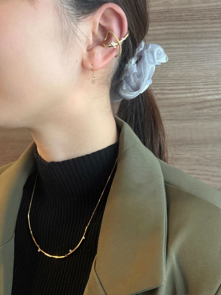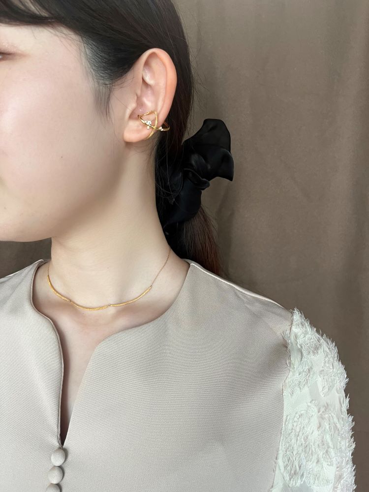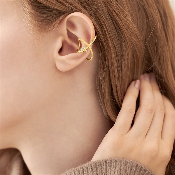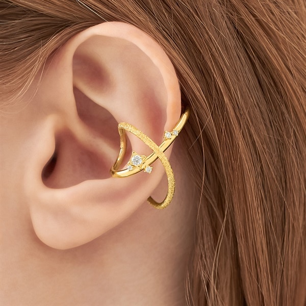 冬の特別なきらめきをテーマにしたジュエリーコレクションLight within me - 私の内なる輝き- 光の繊細なきらめきを表現した-Mellow-シリーズ繊細にきらめくダスト加工が耳を包み込むイヤーカフ。クロスされたラインの鏡面とスターダスト加工のコントラストが魅力です。輝きの石座をほどこしたストーンが散りばめられた、耳周りが華やかになるアクセントジュエリーです。【限定ケース付き】こちらのジュエリーは、限定ケースに入れてお包みします。【先行予約特典】 こちらのジュエリーをご購入のお客さまに、Canal 4℃オリジナルウィンターベアをプレゼント。※ベアにお付けするリボンのカラーとメッセージを全16パターンからご選択いただけます。※先行予約期間終了後はオリジナルウィンターベアは3,080円(税込)でご購入いただけます。※ショッピングバッグ内にてお好きなノベルティをご選択ください。選択されていない場合はお付けすることができませんのであらかじめご了承ください。※先行予約枠は数に限りがございます。ご希望のジュエリーがお品切れの場合は通常販売をお待ちください。通常販売開始:10月23日(木)16時00分からメッセージカードの作成は、通常販売時のみとなります。