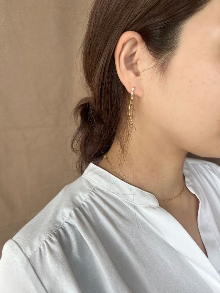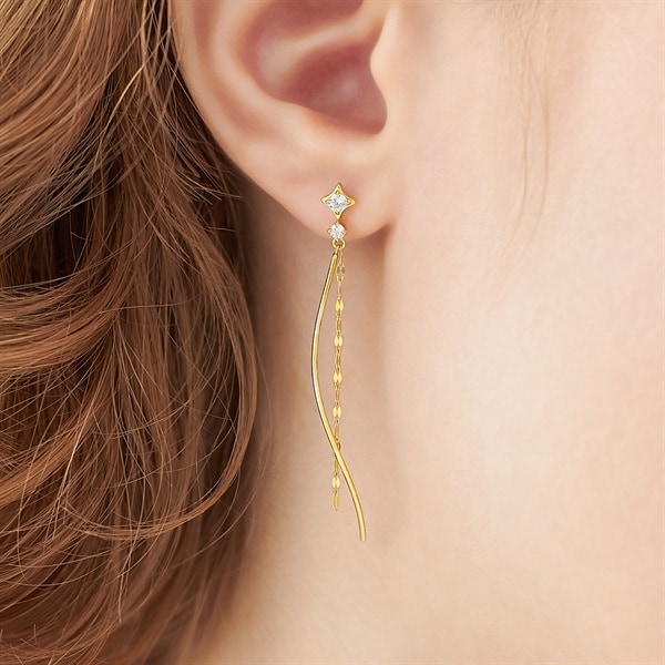 冬の特別なきらめきをテーマにしたジュエリーコレクションLight within me - 私の内なる輝き- 光の繊細なきらめきを表現した-Mellow-シリーズきらめくチェーンが揺れ動き耳元を華やげるピアス。輝きの石座が繊細にきらめき、華やかな印象をプラスします。スタイルを選ばずに身に着けられるデザインは、オンオフ問わず活躍します。華やかなイエローゴールドカラーが顔周りを明るく見せてくれるアイテムです。【限定ケース付き】こちらのジュエリーは、限定ケースに入れてお包みします。【先行予約特典】 こちらのジュエリーをご購入のお客さまに、Canal 4℃オリジナルウィンターベアをプレゼント。※ベアにお付けするリボンのカラーとメッセージを全16パターンからご選択いただけます。※先行予約期間終了後はオリジナルウィンターベアは3,080円(税込)でご購入いただけます。※ショッピングバッグ内にてお好きなノベルティをご選択ください。選択されていない場合はお付けすることができませんのであらかじめご了承ください。※先行予約枠は数に限りがございます。ご希望のジュエリーがお品切れの場合は通常販売をお待ちください。通常販売開始:10月23日(木)16時00分からメッセージカードの作成は、通常販売時のみとなります。