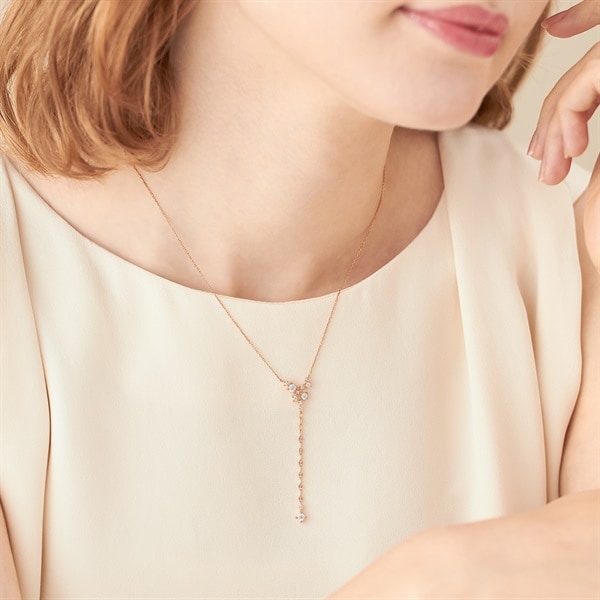 Winter Collection一覧はこちら >冬の特別なきらめきをテーマにした限定ジュエリーLight within me - 私の内なる輝き- 自分らしく輝ける-Light-シリーズ華やかな光の輝きをイメージしたY字ネックレス。石の輝きを引き立てるシャープな石留めがポイントです。寄せられた大小の石と揺れるペタルチェーンが動くたびにきらめき、スタイルのアクセントになるアイテム。首元をすっきり見せてくれるシルエットが、身に着けるひとの輝きを引き出します。【数量限定ケース付き】 なくなり次第終了※ショッピングバッグ内の画像が限定ケースではない場合、限定ケースのお取り扱いは終了しております。【もうひとつの贈り物に】オプションでオリジナルウィンターベア [3,080円(税込)] もご用意しております。ご希望の方は、ショッピングバッグ内で追加してください。※ベアはなくなり次第販売終了となります。