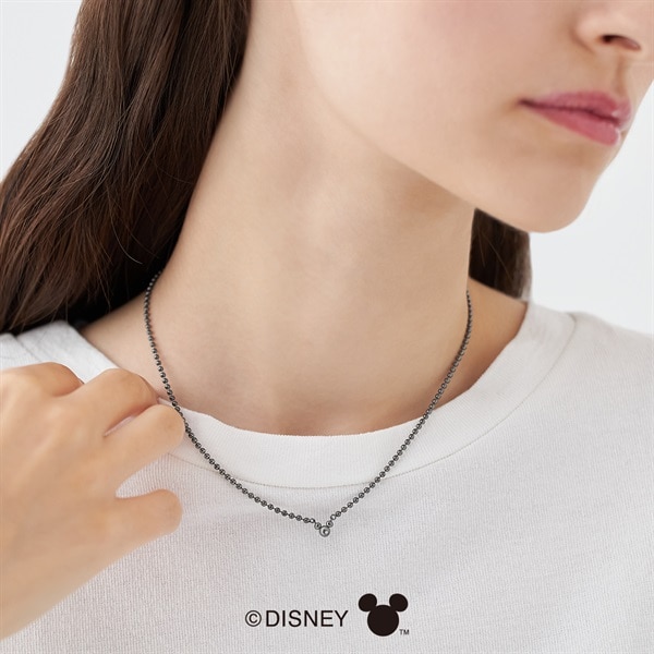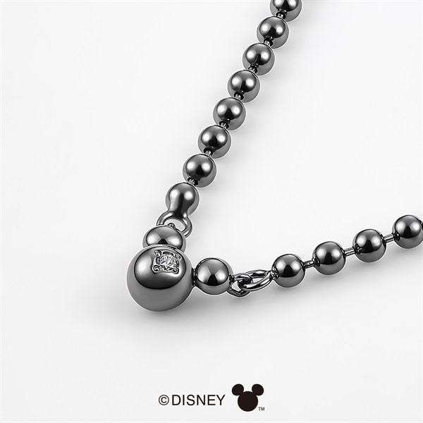 11月18日の『ミッキーマウス』のお誕生日をお祝いしたコレクション「ミッキーマウス」のボディカラーをイメージしたブラックロジウムカラーが印象的なネックレス。ボールチェーンの中には、さりげなく「ミッキーマウス」モチーフが潜む遊び心あるデザイン。モノトーンでまとめたシックな輝きが、シンプルな装いにモードなアクセントをプラス。Tシャツなどのカジュアルスタイルにも合わせやすく、ユニセックスに楽しめます。同デザインのリングカフとセットでコーディネートすれば、より洗練された印象に。[数量限定ケース付き] なくなり次第終了※ショッピングバッグ内の画像が限定ケースではない場合、限定ケースのお取り扱いは終了しております。品番:152544751004 リングカフはこちら >