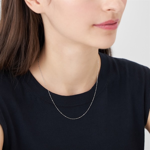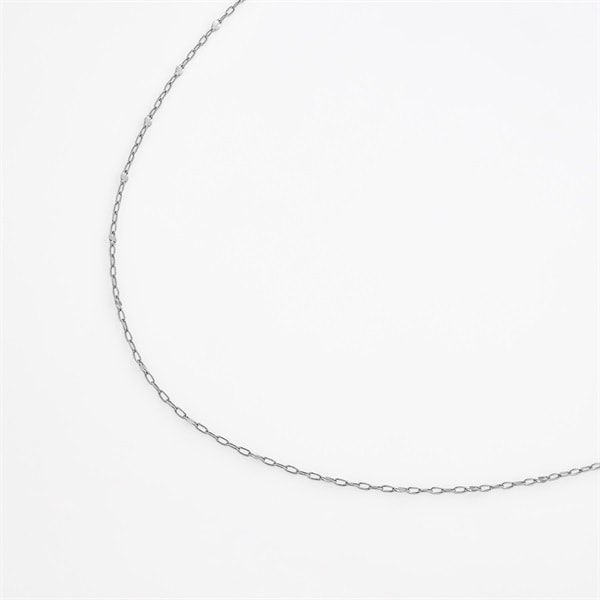 デイリーに着けられるチェーンネックレス。繊細なアズキチェーンの中に、光が反射するペタルパーツのきらめきがアクセントになるデザイン。ホワイトゴールドの涼やかな色味が清潔な雰囲気をもたらします。チェーンネックレスとしてももちろん、チャームを通して華やかさをプラスする着け方もおすすめです。【Canal4℃ ネックレスチェーン&チャーム 一覧はこちら】