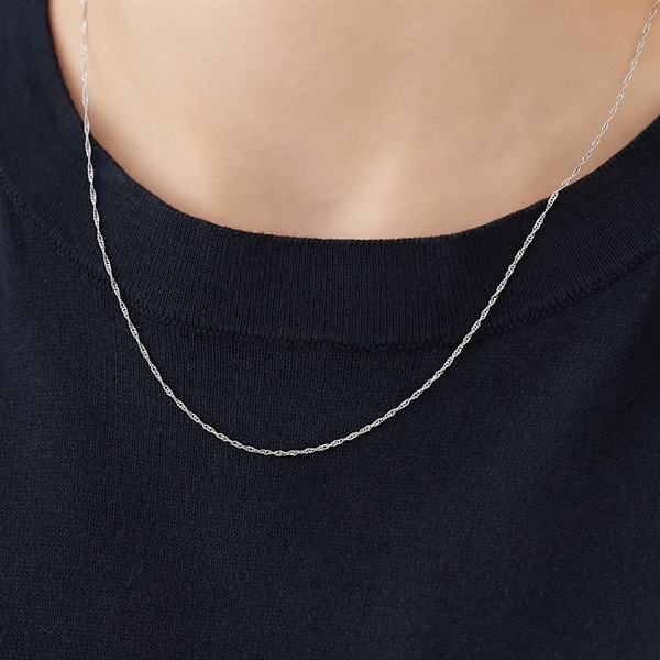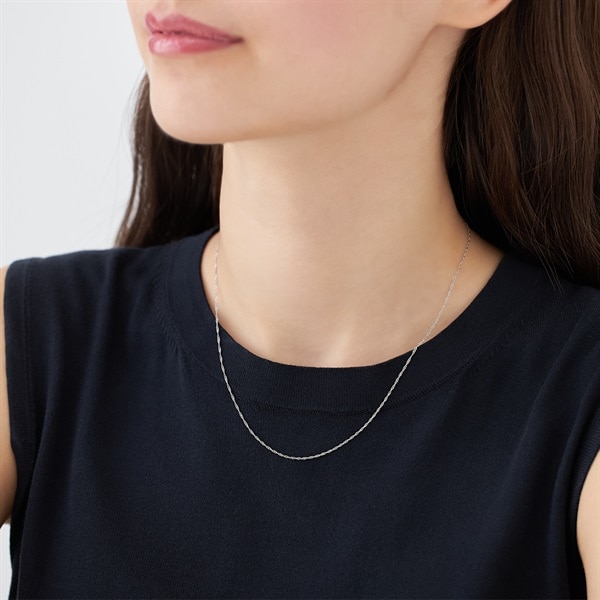 デイリーに着けられるチェーンネックレス。ロープのようにねじれた立体感のあるスクリューチェーンは、光を多く反射するので華奢ながらも輝きが目を引くデザイン。ホワイトゴールドの涼やかな色味が清潔な雰囲気をもたらします。チェーンネックレスとしてももちろん、チャームを通して華やかさをプラスする着け方もおすすめです。【Canal4℃ ネックレスチェーン&チャーム 一覧はこちら】