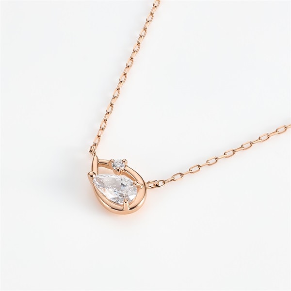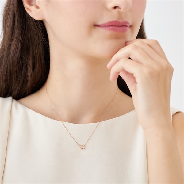 ストーンの輝きが華やかなしずくモチーフのネックレス。斜めにデザインされたシルエットが、自然体で身に着けやすい雰囲気を添えてくれるデザイン。浄化や癒しを意味するしずくモチーフは大切な方へのギフトにもおすすめです。