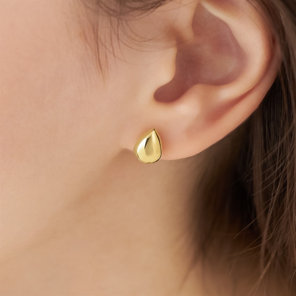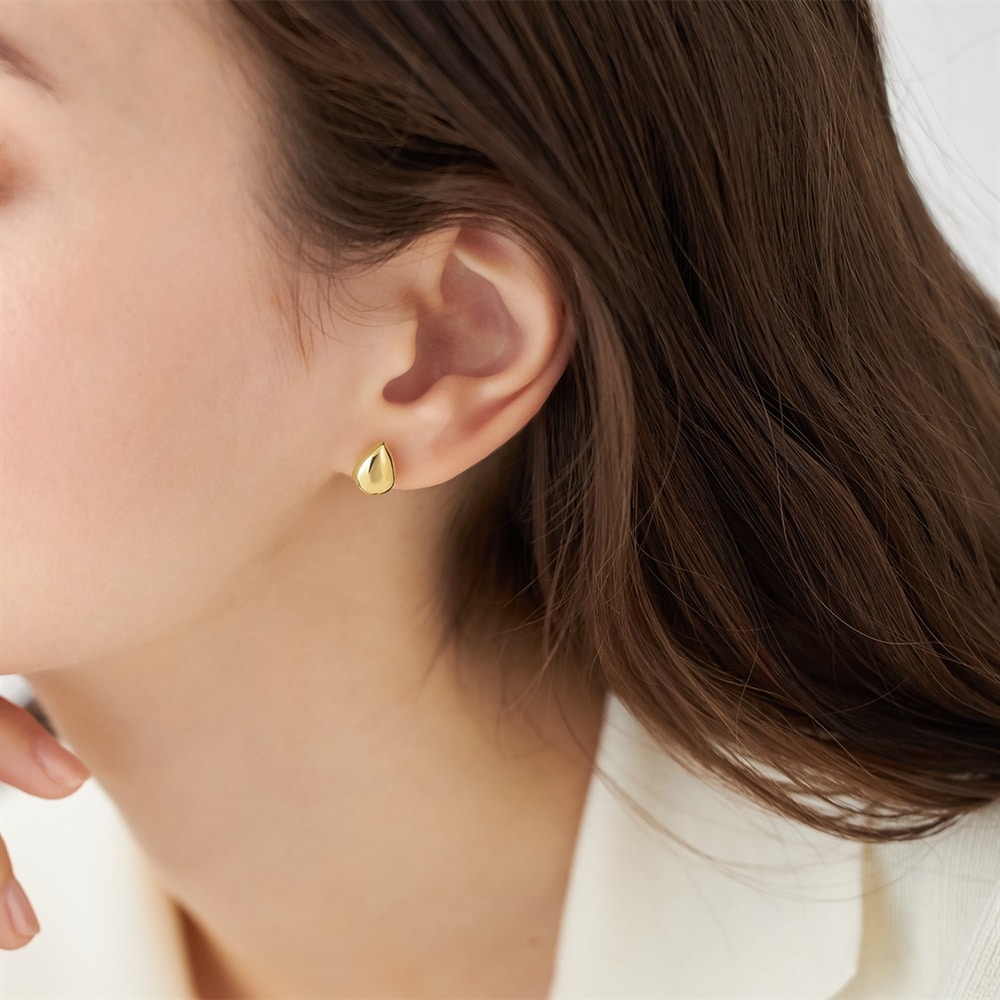 程よいボリューム感が魅力のしずくモチーフピアス。イエローゴールドの眩い輝きが、顔周りを華やかに彩ります。トレンド感のあるデザインで、コーディネートのアクセントにもぴったり。ご自身へのご褒美ジュエリーとしておすすめです。