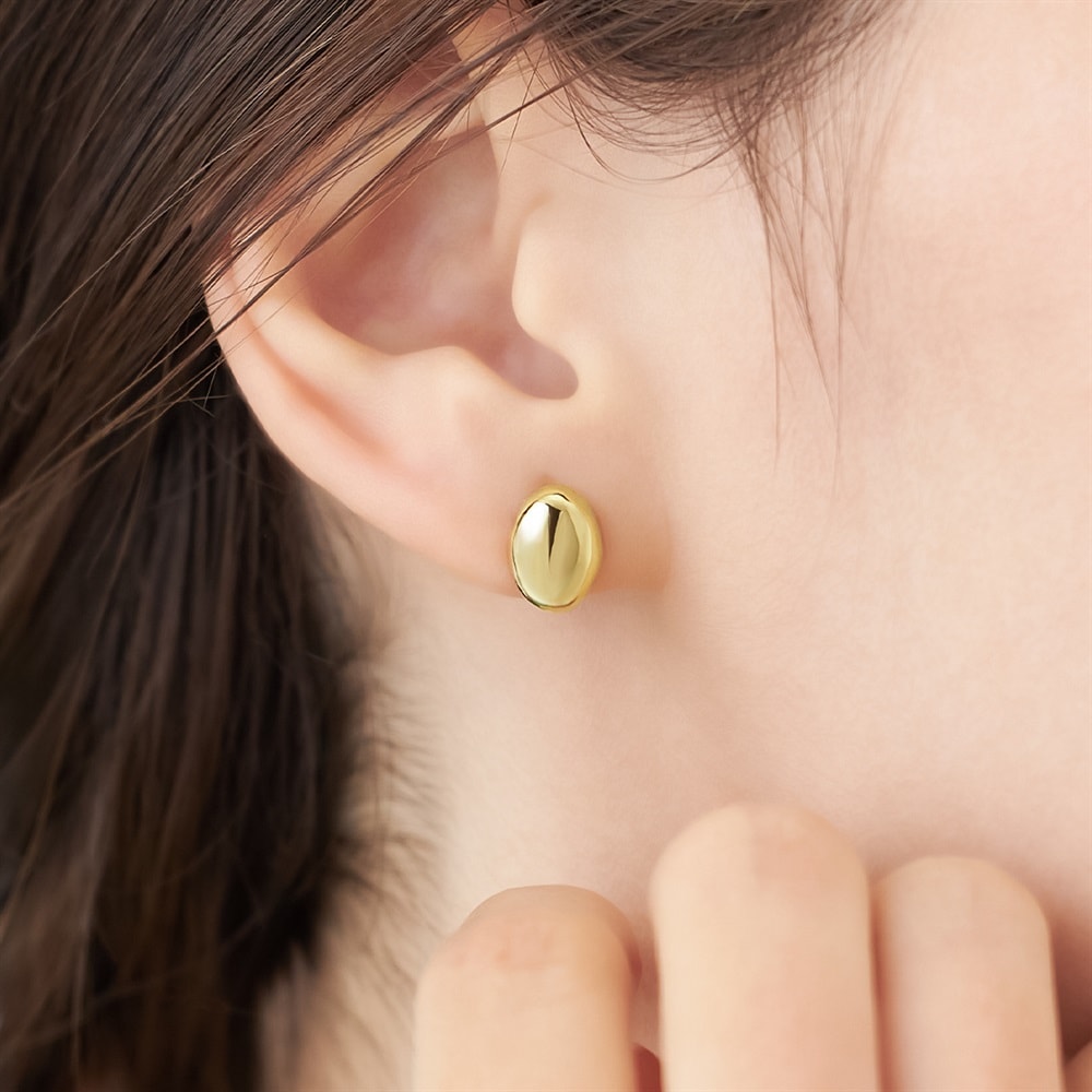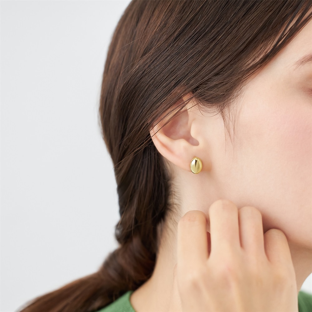 ふっくらとしたフォルムが魅力のボリュームピアス。イエローゴールドの眩い輝きが、顔周りを明るく華やかに彩ります。トレンド感のあるデザインで、装いにこなれた印象をプラスします。