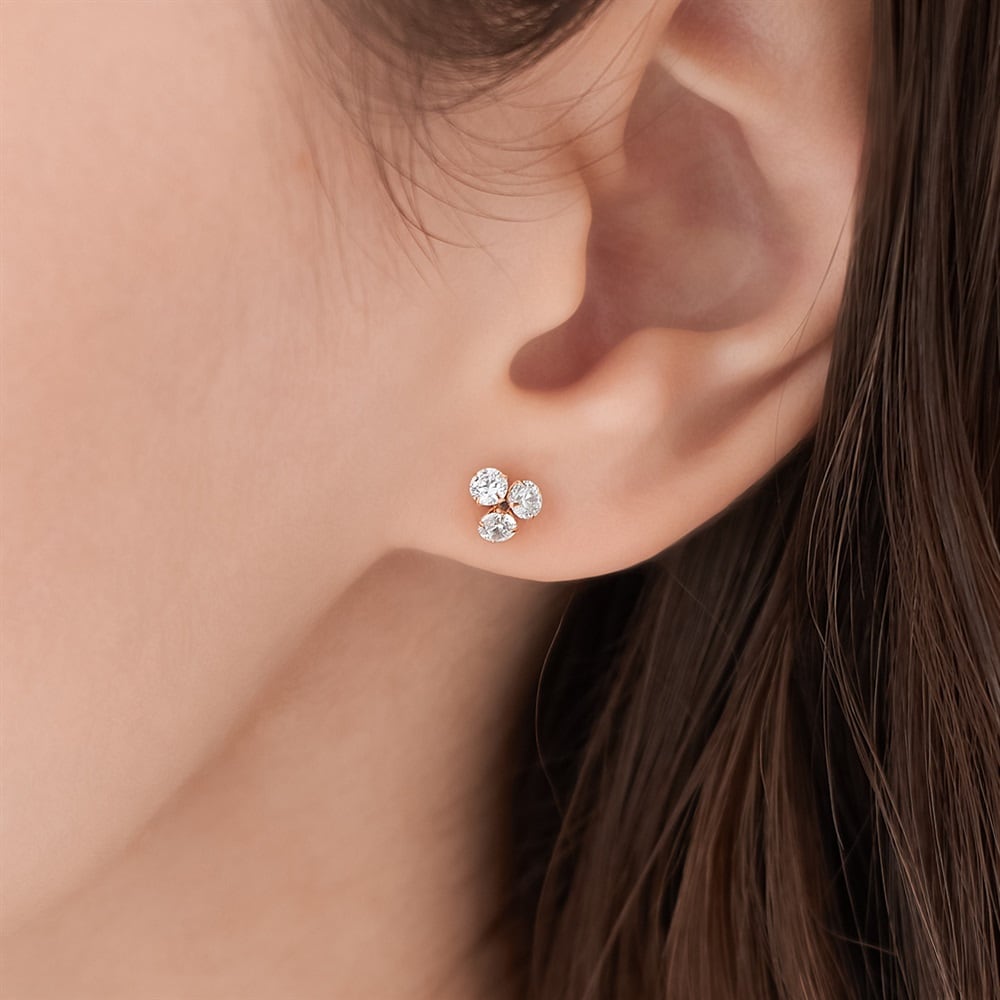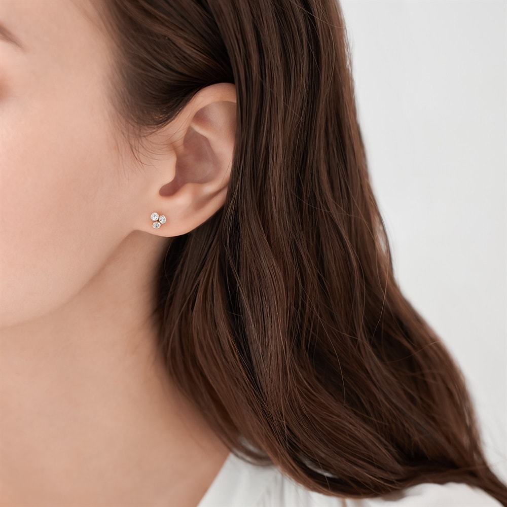 日常使いにぴったりな、3石を寄せたデザインのピアス。ピンクゴールドカラーのやわらかな輝きが、顔周りを優しく明るい印象に仕上げます。オケージョンからデイリーまで幅広く活躍するため、ご自身用にも、大切な方へのギフトにもおすすめです。