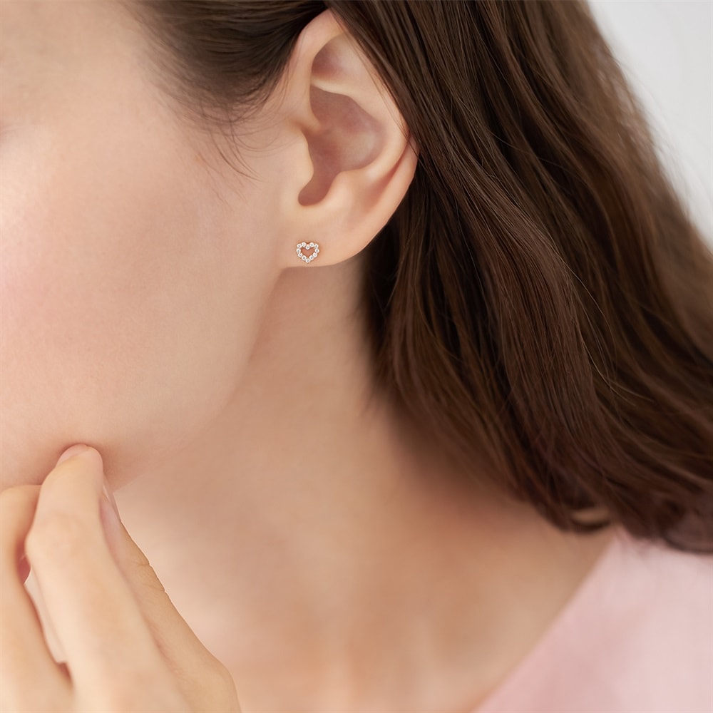 上品なサイズ感が魅力のハートモチーフピアス。ピンクゴールドカラーのやわらかな輝きが、顔周りを優しく彩ります。小ぶりで繊細なデザインは、デイリーにも特別な日にも使いやすいため、ギフトにおすすめです。