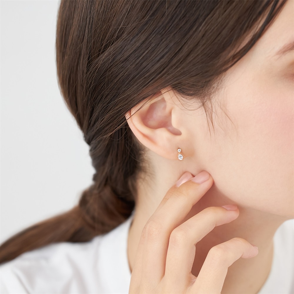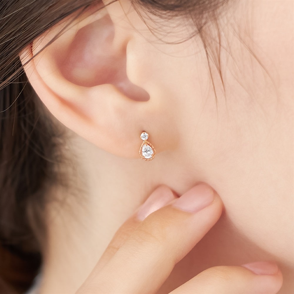 デイリーに使いやすい、しずくモチーフのピアス。ピンクゴールドカラーのやわらかな輝きが、顔周りを優しく彩ります。小ぶりで上品なデザインは、オンオフ問わず活躍するため、ご自身へのご褒美や大切な方へのギフトにもおすすめです。