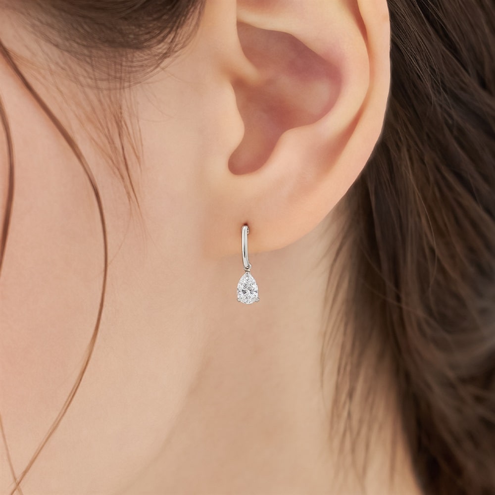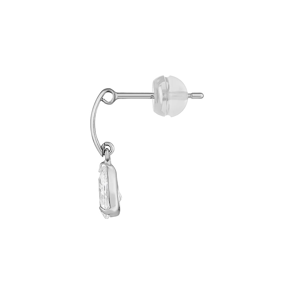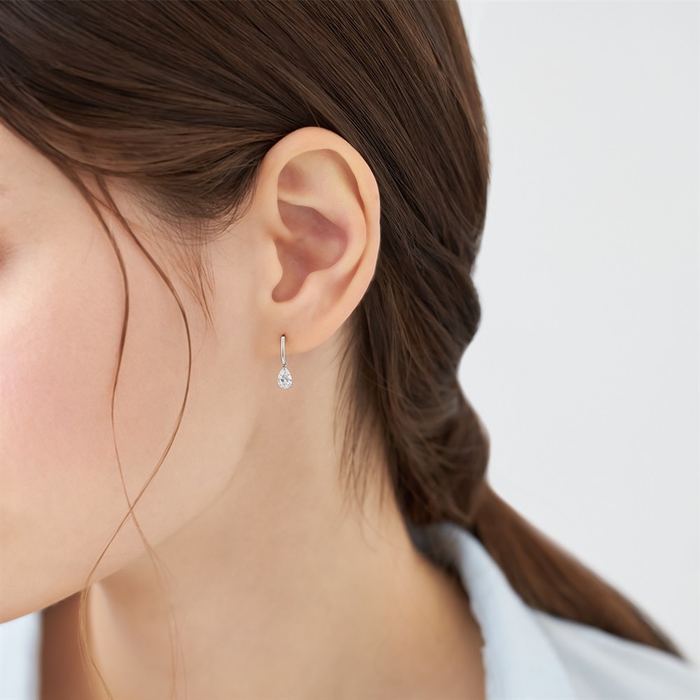 上品に揺れるストーンが耳もとを華やかに彩るピアス。清楚なホワイトカラーの輝きが、顔周りに透明感を添えます。どのようなコーディネートにも合わせやすく、デイリーから特別な日まで幅広く活躍するアイテムです。