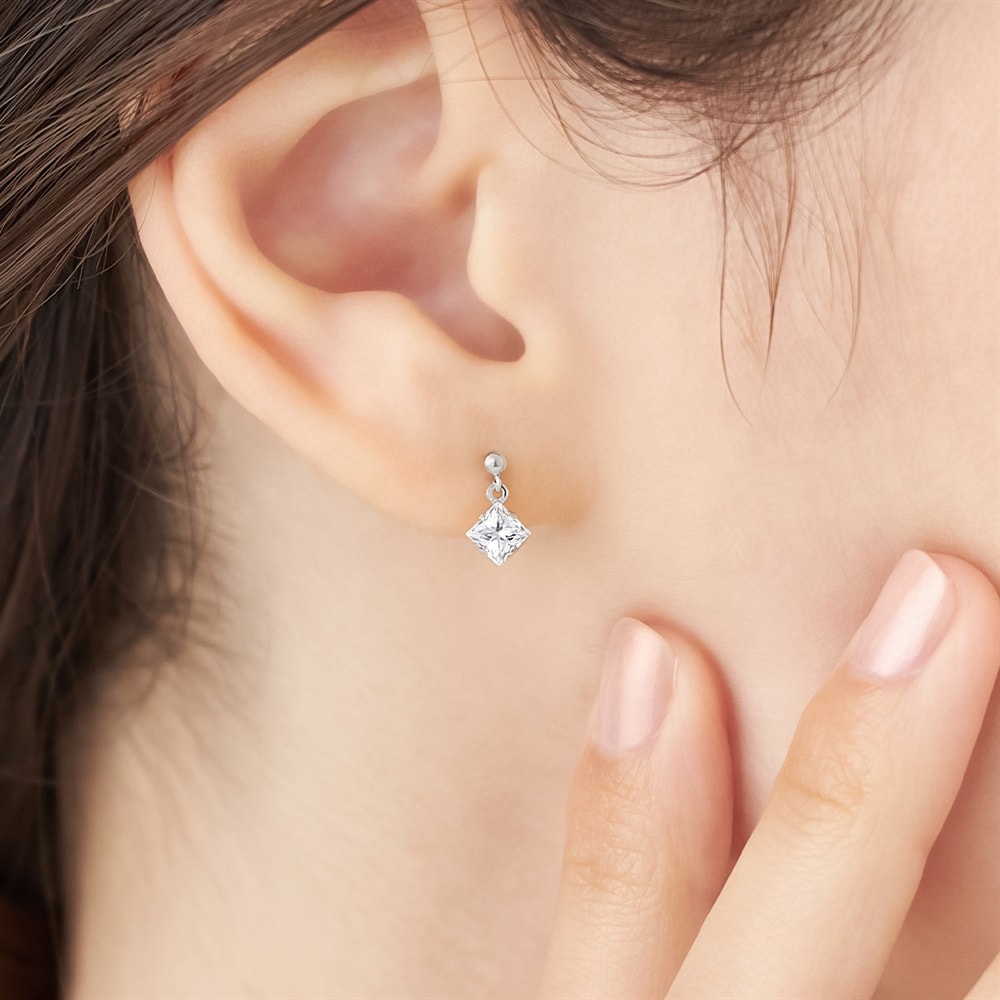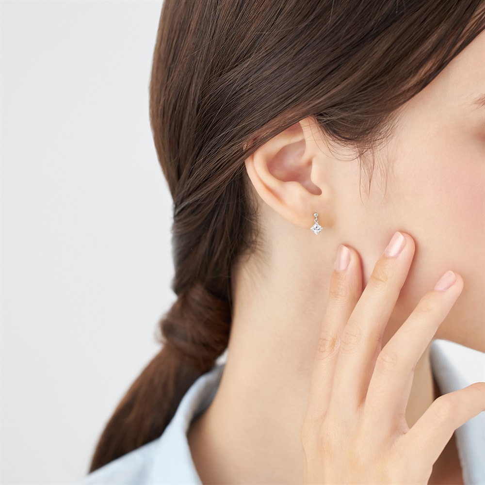 上品なサイズ感のストーンが、耳もとでさりげなくきらめくピアス。清楚なホワイトカラーの輝きが、顔周りに明るさと清潔感を添えます。流行に左右されないシンプルなデザインで、長く愛用できるためギフトにもおすすめです。