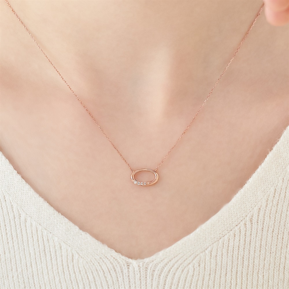 建築物や美術など様々な場面で存在するもっとも美しいとされる「黄金比」を用いてデザインされたオーバルモチーフに、ダイヤモンドをあしらった上品なネックレス。やわらかな色合いが魅力のK10ピンクゴールドは、肌に自然に溶け込み女性らしい優美さを引き立てます。計算されたフォルムが、首元にさりげない存在感を与えます。あらゆるコーディネートに寄り添うシンプルなデザインは、流行に左右されず永くご愛用いただけます。大切な人へのギフトや自分へのご褒美におすすめです。※天然石・天然素材を使用しているため、実際の色味や風合いが異なる場合がございます。
