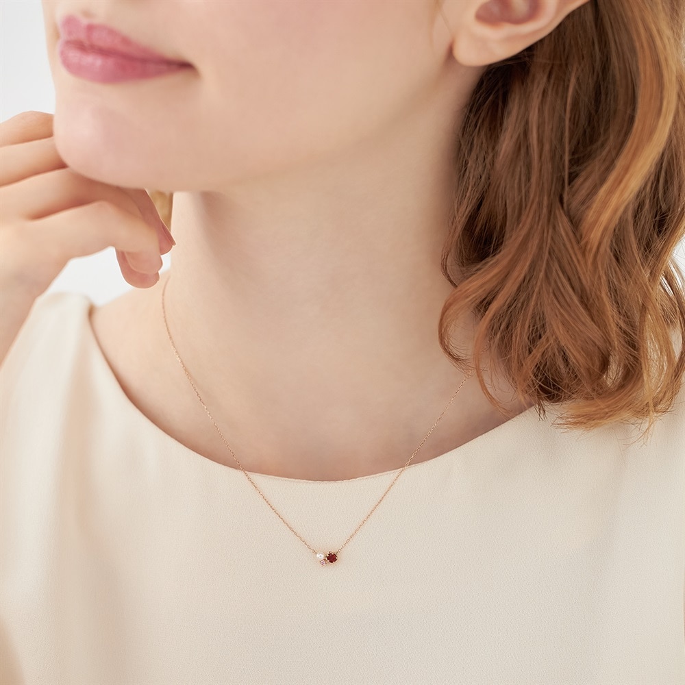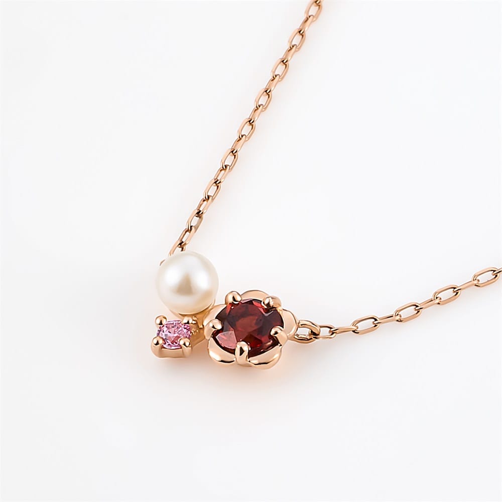 新年の幕開けにふさわしい、幸運を呼び込む-New Year Collection-平和を意味する「紅白カラー」のガーネットとパールが魅力のK10ネックレス。松竹梅の梅をモチーフにした石座は「気高さ」や「忍耐力」の象徴として、お守りがわりに身に着けられます。ご自身や大切な方の飛躍を願う、特別なジュエリーです。※天然石・天然素材を使用しているため、実際の色味や風合いが異なる場合がございます。