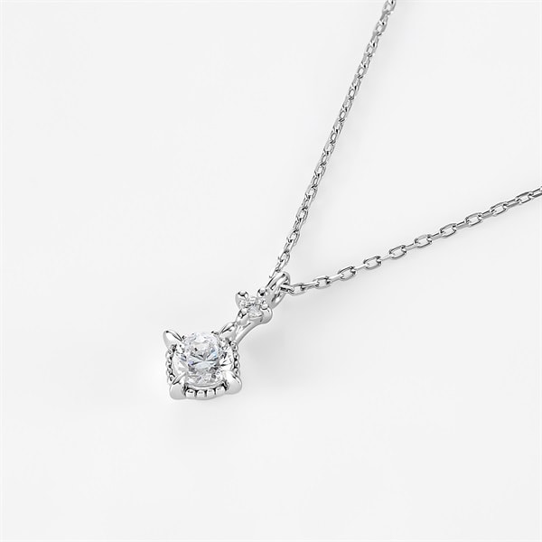 Winter Collection一覧はこちら >冬の特別なきらめきをテーマにした限定ジュエリーLight within me - 私の内なる輝き- 自分らしく輝ける-Light-シリーズ輝きを表現した石座が胸元できらめくネックレス。光の粒が寄せ集まったミルのデザインにストーンが寄り添い、胸元を輝かせます。縦に2石並ぶシルエットが、首元をすっきりとした印象に見せてくれます。シンプルな仕上がりでさまざまなスタイルにマッチし、ギフトにもおすすめです。【数量限定ケース付き】 なくなり次第終了※ショッピングバッグ内の画像が限定ケースではない場合、限定ケースのお取り扱いは終了しております。【もうひとつの贈り物に】オプションでオリジナルウィンターベア [3,080円(税込)] もご用意しております。ご希望の方は、ショッピングバッグ内で追加してください。※ベアはなくなり次第販売終了となります。