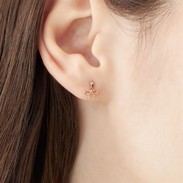 大切なひととの絆を結ぶクリスマス限定ジュエリー-Present Moments-プレゼントボックスを包むリボンをモチーフにしたピアス。特別な輝きを放つダイヤモンドがきらめき、想いをつなぐリボンが動くたびに揺れて視線を集めます。解けない絆を象徴するアイテムで、大切な方へのギフトにもおすすめです。※天然石・天然素材を使用しているため、実際の色味や風合いが異なる場合がございます。【数量限定ケース付き】 なくなり次第終了※ショッピングバッグ内の画像が限定ケースではない場合、限定ケースのお取り扱いは終了しております。