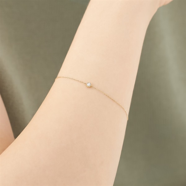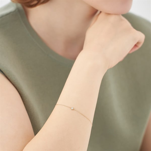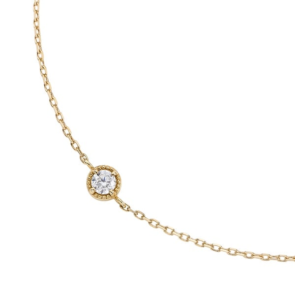 1粒のストーンブレスレット。ミル打ちがクラシカルな雰囲気を演出します。シンプルなデザインなので、他のブレスレットとのレイヤードもおすすめです。【K7-Classic Gold-】もっと多くの人々にゴールドを楽しんでいただきたいという思いから、Canal4℃が独自で配合して作り上げた、Classic Gold(クラシックゴールド)。通常のイエローゴールドに比べて、淡くやわらかさを感じるクラシックゴールドは、肌なじみが良く身に着けやすいカラーです。初めてイエローゴールドをお選びになられる方にも挑戦しやすく、ピンクゴールドがお好きな方にもおすすめなカラーです。