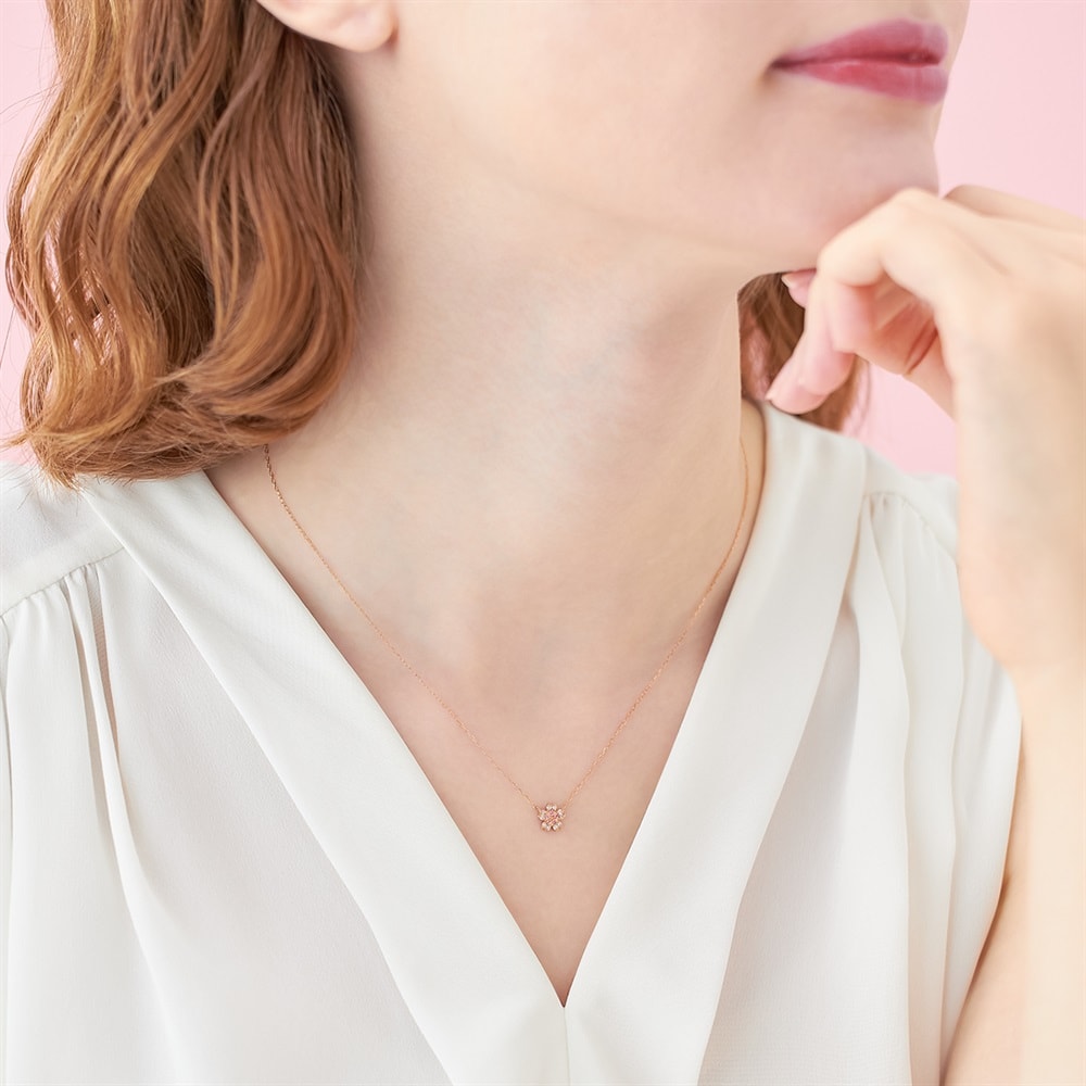 SAKURA Collection一覧はこちら >桜と空が重なり合う一瞬の情景に、春の想いを映した桜コレクション桜の5枚花に敷き詰められたダイヤモンドとトルマリン(ピンク)が眩く輝く高級感のあるネックレス。K18ピンクゴールドの素材で肌なじみがよく上品なデザインです。特別なギフトにもおすすめです。※天然石・天然素材を使用しているため、実際の色味や風合いが異なる場合がございます。【予約購入特典 なくなり次第終了】こちらのジュエリーをご購入のお客さまに、Canal4℃オリジナルジュエリートレーをプレゼント。※ショッピングバッグ内にノベルティの画像が表示されていない場合、ノベルティのお取り扱いは終了しております。※先行予約枠は数に限りがございます。ご希望のジュエリーがお品切れの場合は通常販売をお待ちください。通常販売開始:1月22日(木)16時00分からメッセージカードの作成は、通常販売時のみとなります。