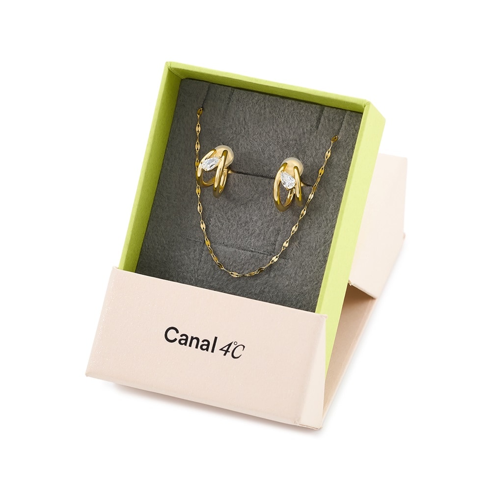 First Pieces -Stater Jewelry Kit-公式オンラインショップでしか出会えない限定アイテム。はじめての本格ジュエリーにぴったりな、スターターキットのようなチェーンネックレス&イヤリングセット。永く愛せるシンプルさで、毎日にそっと寄り添うデザイン。光を受けてきらめくペタルチェーンとペアシェイプの石が上品な印象に。ご自身で気軽にご調整できるねじ式のイヤリングを使用しています。【数量限定ケース付き】※なくなり次第終了※ショッピングバッグ内の画像が限定ケースではない場合、限定ケースのお取り扱いは終了しております。