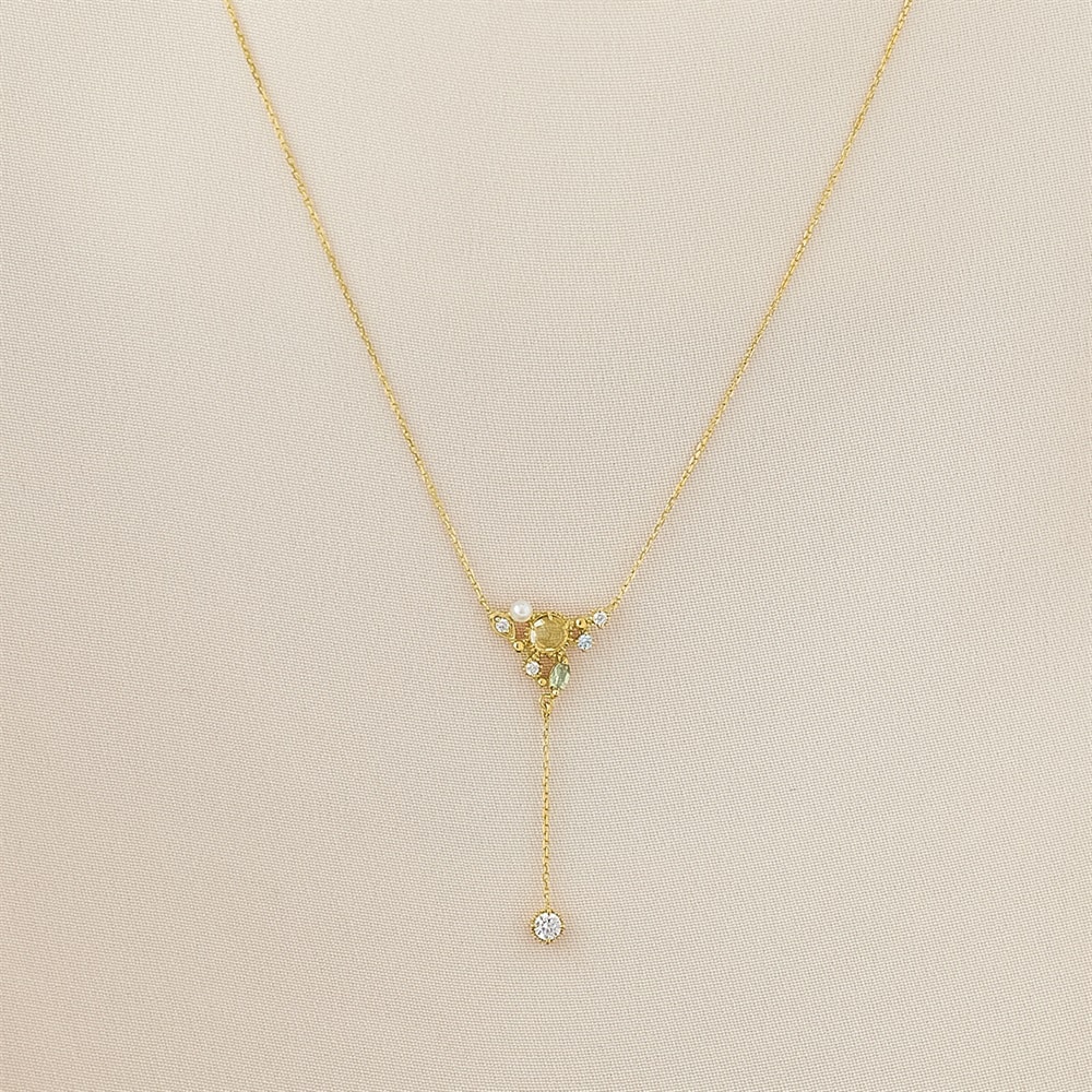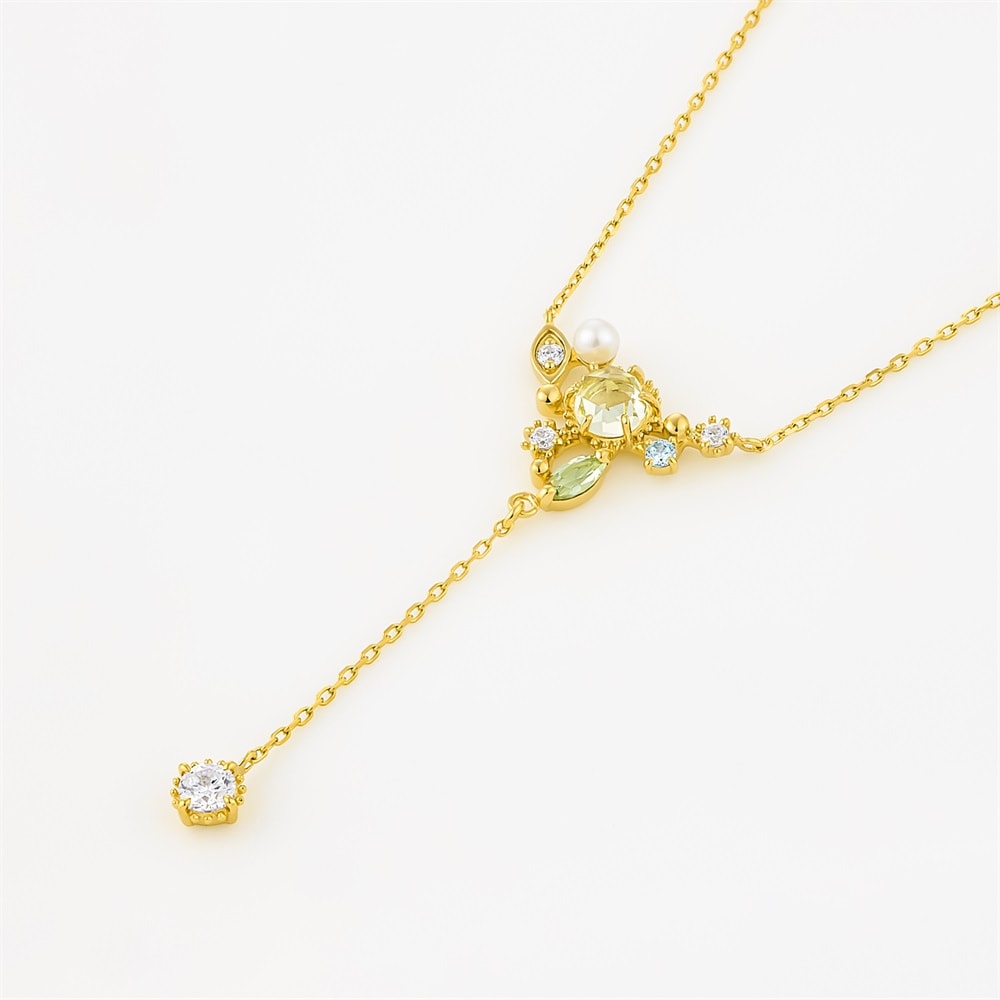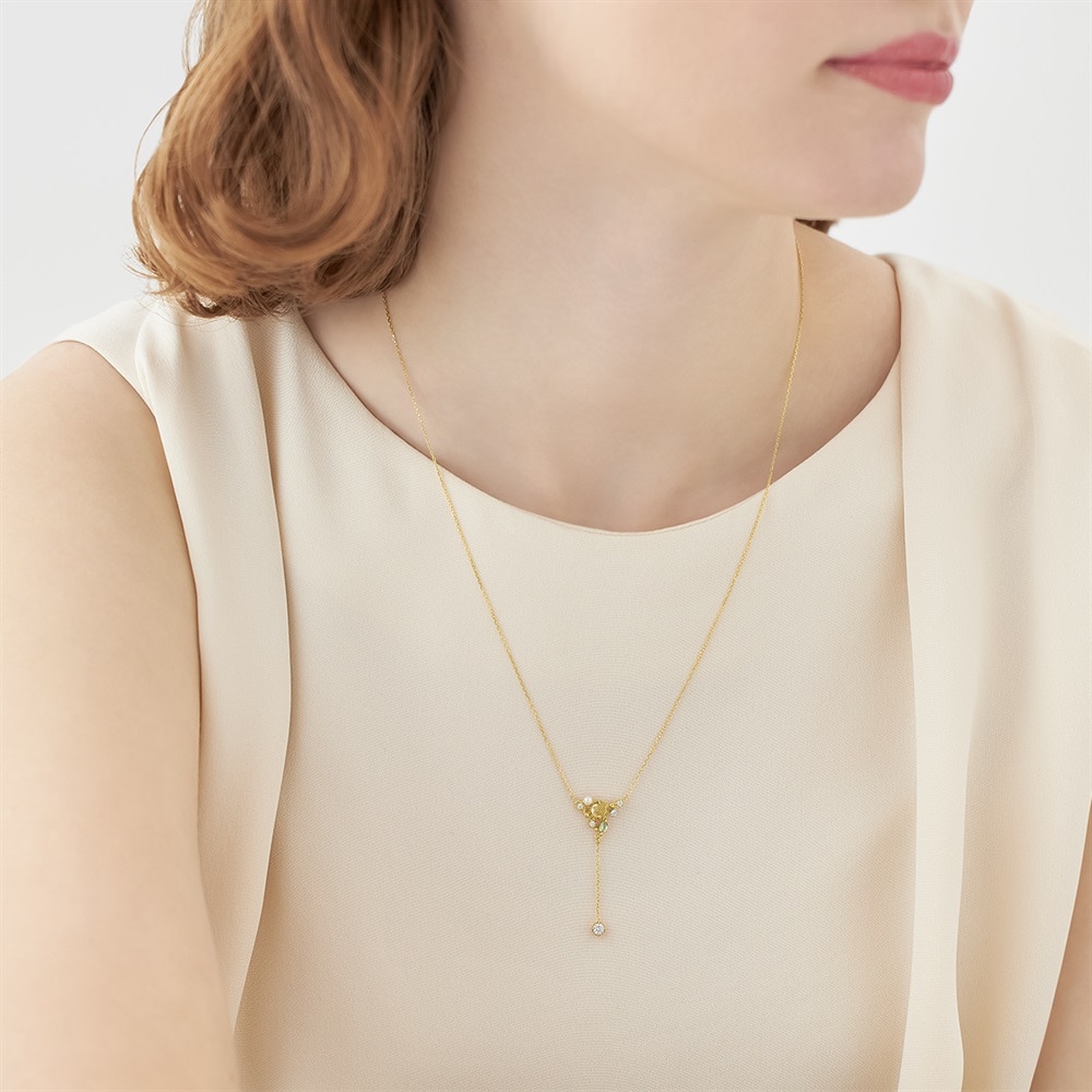 MIMOSA Collection一覧はこちら >澄んだ空とやさしい黄色のミモザが描く春の情景を表現したジュエリーコレクション。咲き誇るミモザが春風で揺れているかのようなデザインのY字ネックレス。鮮やかなグリーンカラーのペリドットと爽やかなブルーカラーのキュービックジルコニアがアクセントとして輝きます。大切な方へのギフトにもおすすめです。3月8日の国際女性デーは男性から女性に向けてミモザの花が贈られるようになったことから「ミモザの日」とも言われています。※天然石・天然素材を使用しているため、実際の色味や風合いが異なる場合がございます。【購入特典 なくなり次第終了】こちらのジュエリーをご購入のお客さまに、オリジナルミモザ刺繍ハンカチをプレゼント。※ホワイト、イエローの2色から選べます。※ショッピングバッグ内にノベルティの画像が表示されていない場合、ノベルティのお取り扱いは終了しております。