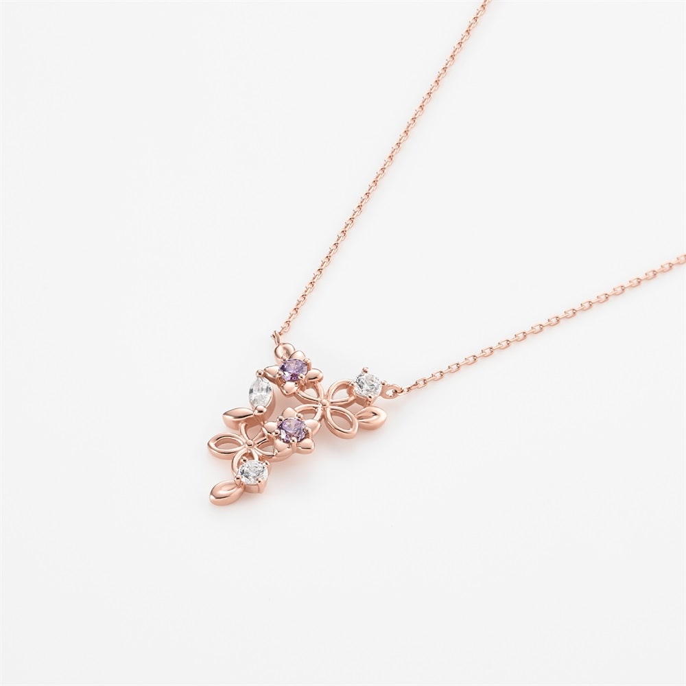 ふわりと香る春の便りが、新しい季節へ導いてくれる Spring Collection -Floral notes-春の訪れを告げるライラックと、飛躍のシンボルである蝶をモチーフにしたシリーズ。デコルテラインを美しく見せるY字のラインが美しいネックレス。ふっくらとした花びらと、軽やかな透かしの表現を混ぜた、リズミカルなデザインがポイントです。ごく稀に咲く5枚の花びらの「ハッピーライラック」を忍ばせ、お守り代わりとしても身に着けられるアイテムです。【数量限定ケース付き】 なくなり次第終了※ショッピングバッグ内の画像が限定ケースではない場合、限定ケースのお取り扱いは終了しております。