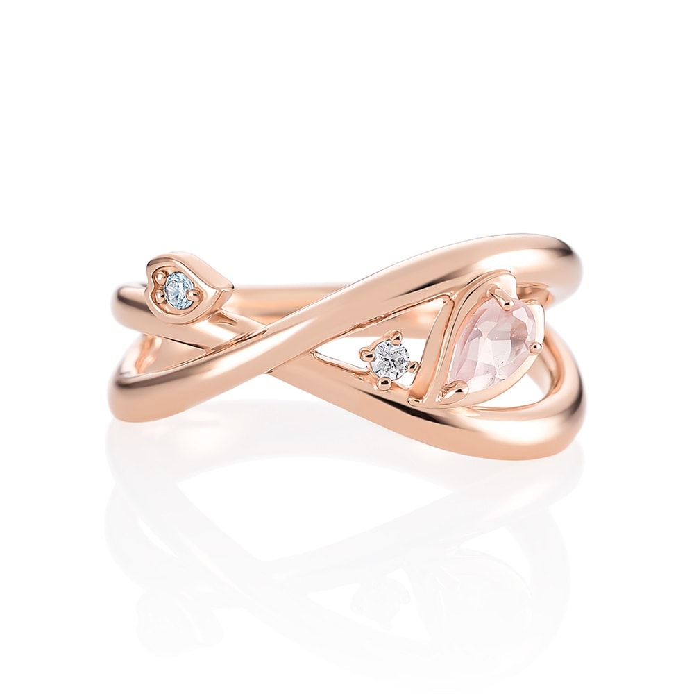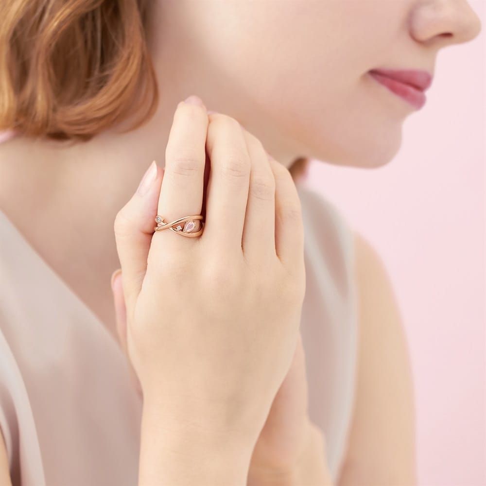 SAKURA Collection一覧はこちら >桜と空が重なり合う一瞬の情景に、春の想いを映した桜コレクションやわらかなラインがクロスに重なる立体感のあるリング。花びらのようにあしらわれた優しいピンクのローズクォーツが風に舞うように指元に寄り添います。ダブルラインで1本着けるだけで存在感のある印象に。※天然石・天然素材を使用しているため、実際の色味や風合いが異なる場合がございます。※ボリューム(幅)のあるリングは、通常より着用時にサイズが小さく感じる場合がございます。【予約購入特典 なくなり次第終了】こちらのジュエリーをご購入のお客さまに、Canal4℃オリジナルジュエリートレーをプレゼント。※ショッピングバッグ内にノベルティの画像が表示されていない場合、ノベルティのお取り扱いは終了しております。※先行予約枠は数に限りがございます。ご希望のジュエリーがお品切れの場合は通常販売をお待ちください。通常販売開始:1月22日(木)16時00分からメッセージカードの作成は、通常販売時のみとなります。