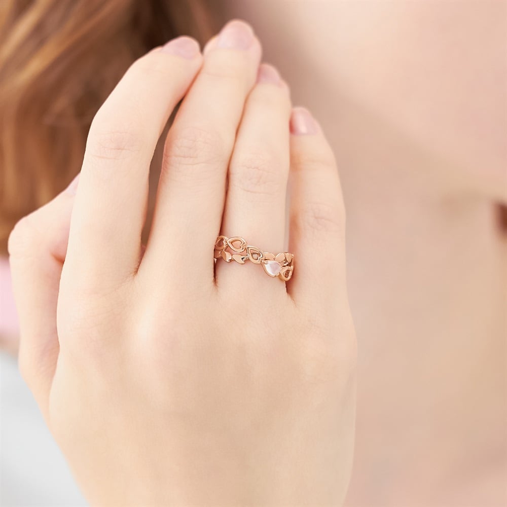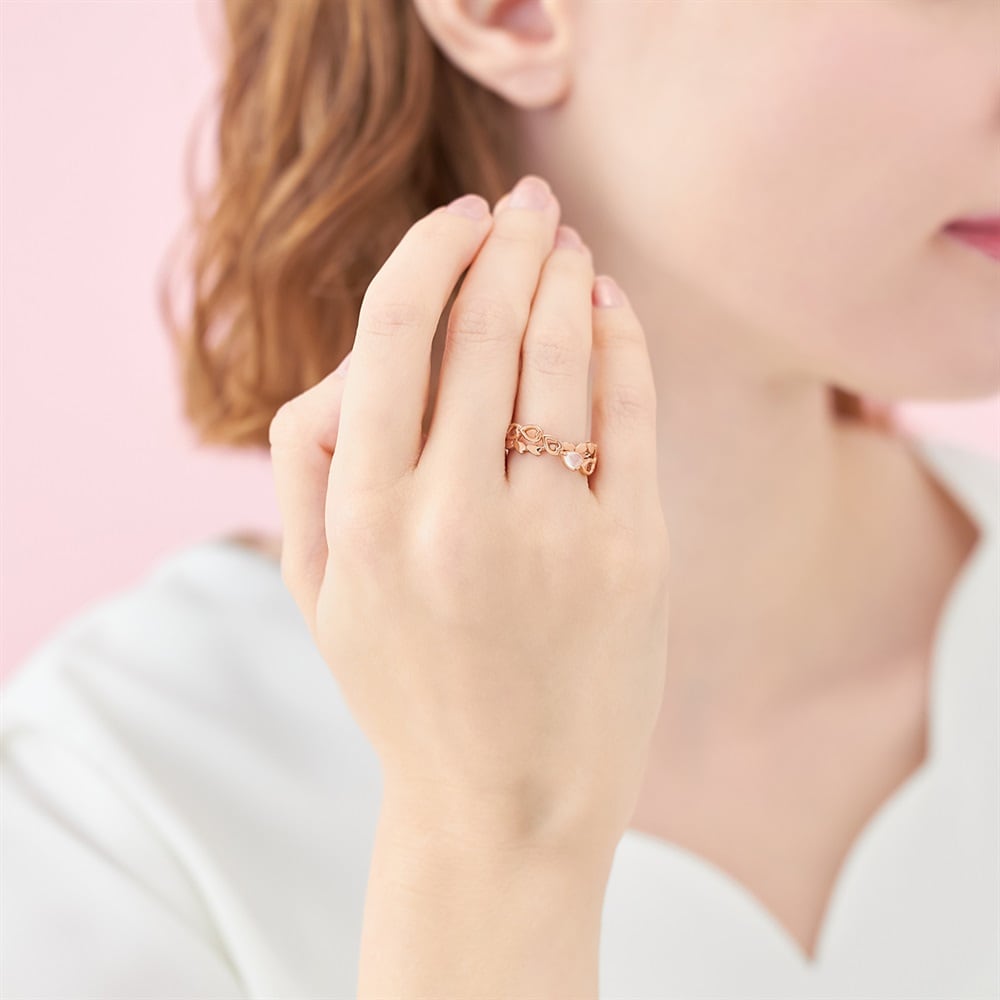SAKURA Collection一覧はこちら >桜と空が重なり合う一瞬の情景に、春の想いを映した桜コレクションやわらかなラインがクロスに重なる立体感のあるリング。花びらが風に舞うように指元に寄り添うデザインがポイント。さり気なく留められた優しいピンクのローズクォーツがみずみずしくきらめきます。ダブルラインで1本つけるだけで存在感のある印象に。※天然石・天然素材を使用しているため、実際の色味や風合いが異なる場合がございます。※ボリューム(幅)のあるリングは、通常より着用時にサイズが小さく感じる場合がございます。【予約購入特典 なくなり次第終了】こちらのジュエリーをご購入のお客さまに、Canal4℃オリジナルジュエリートレーをプレゼント。※ショッピングバッグ内にノベルティの画像が表示されていない場合、ノベルティのお取り扱いは終了しております。※先行予約枠は数に限りがございます。ご希望のジュエリーがお品切れの場合は通常販売をお待ちください。通常販売開始:1月22日(木)16時00分からメッセージカードの作成は、通常販売時のみとなります。