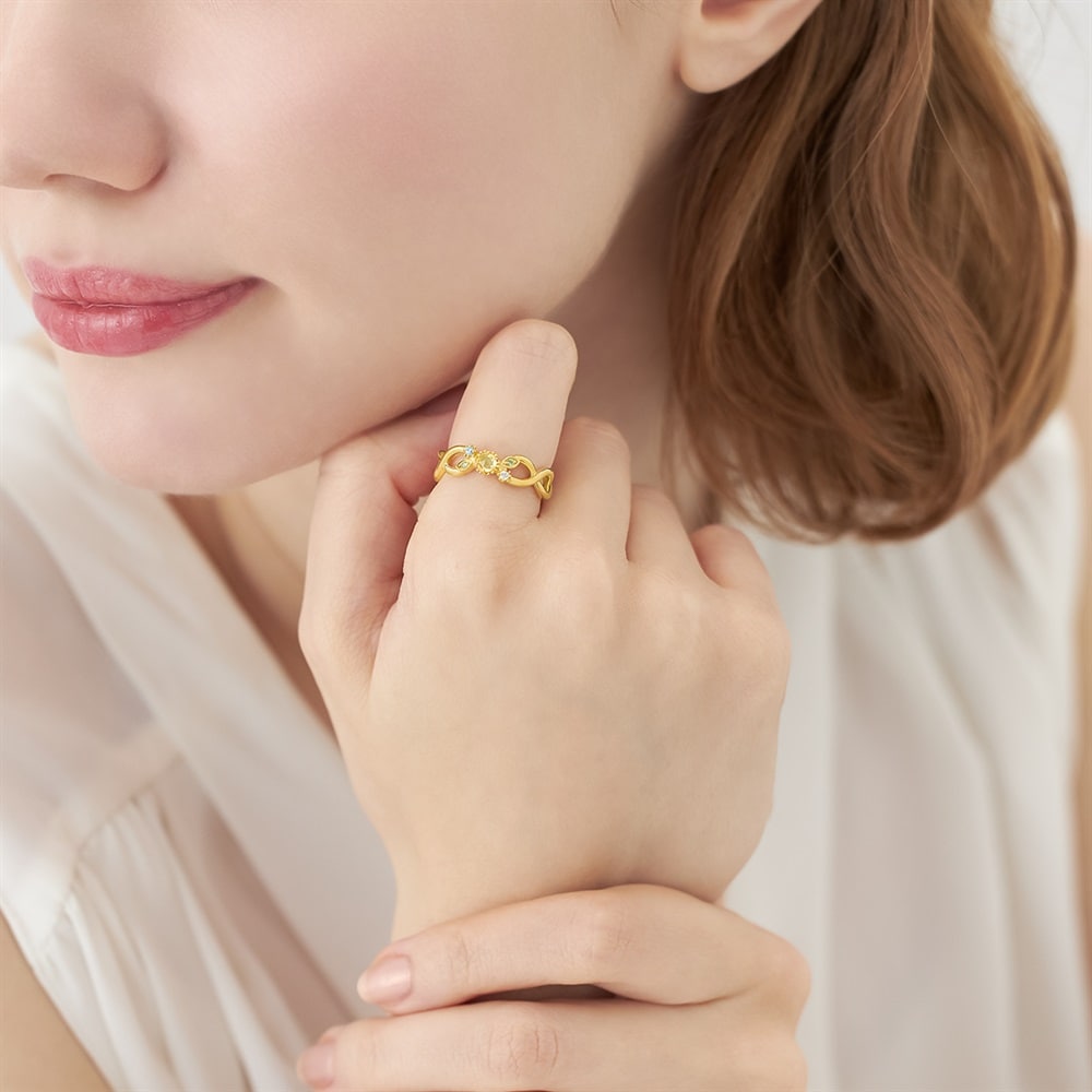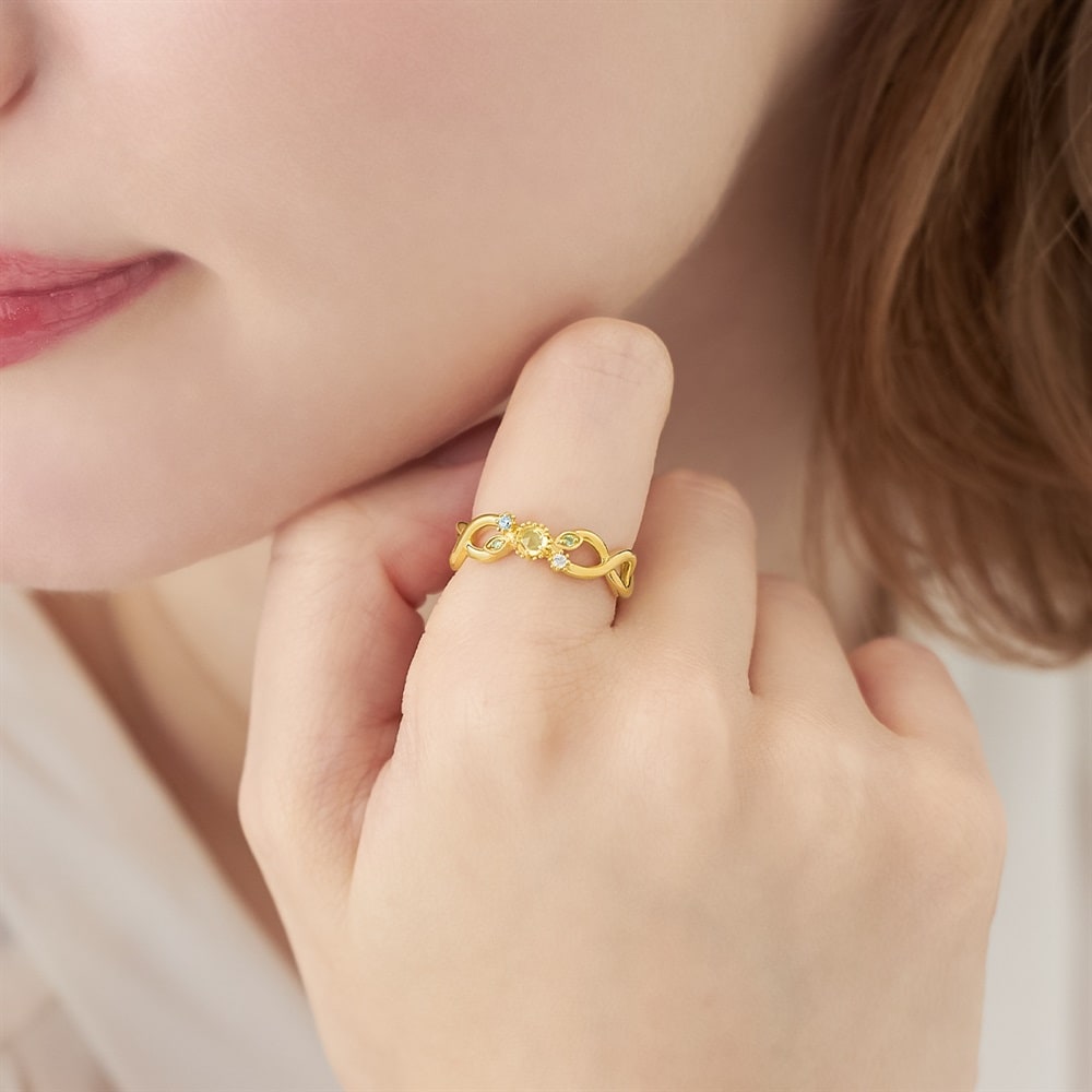 MIMOSA Collection一覧はこちら > 澄んだ空とやさしい黄色のミモザが描く春の情景を表現したジュエリーコレクション。ボタニカルな雰囲気の軽やかな透かしのデザインが魅力のリング。鮮やかなグリーンカラーのペリドットと爽やかなブルーカラーのキュービックジルコニアがアクセントとして輝きます。1つでスタイリングがぐっと華やぎ、春の装いに彩りを添えてくれます。大切な方へのギフトにもおすすめです。3月8日の国際女性デーは男性から女性に向けてミモザの花が贈られるようになったことから「ミモザの日」とも言われています。※天然石・天然素材を使用しているため、実際の色味や風合いが異なる場合がございます。※ボリューム(幅)のあるリングは、通常より着用時にサイズが小さく感じる場合がございます。【購入特典 なくなり次第終了】こちらのジュエリーをご購入のお客さまに、オリジナルミモザ刺繍ハンカチをプレゼント。※ホワイト、イエローの2色から選べます。※ショッピングバッグ内にノベルティの画像が表示されていない場合、ノベルティのお取り扱いは終了しております。
