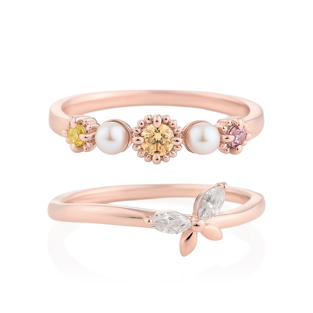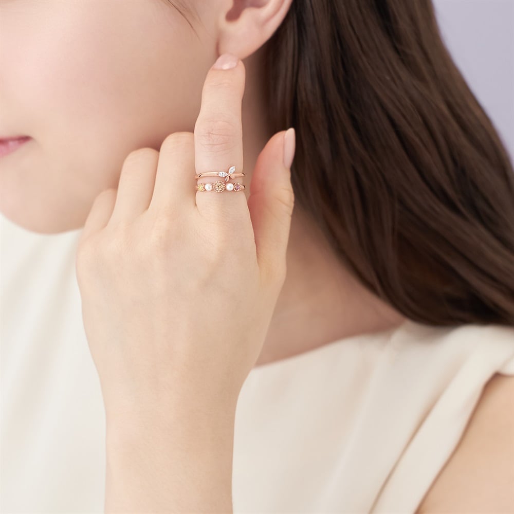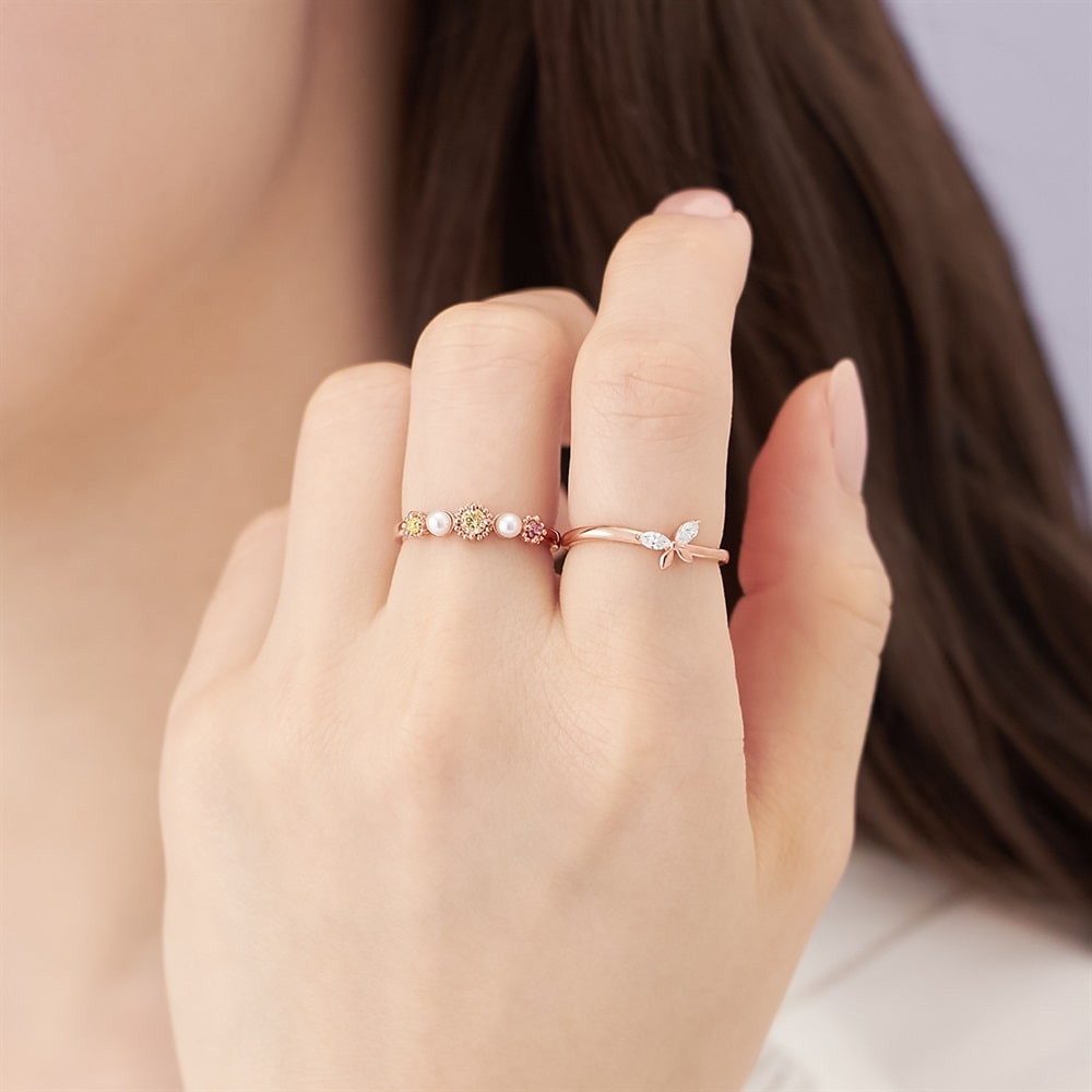 ふわりと香る春の便りが、新しい季節へ導いてくれる Spring Collection -Floral notes-春を鮮やかに彩るガーベラの花々と、飛躍のシンボルである蝶をモチーフにしたシリーズ。重ねてもひとつずつでも身に着けられるリングの2本セット。ガーベラのデザインには朝露のようなパールを添えて、指元をぱっと明るく華やかに彩ります。 軽やかに舞う蝶をイメージしたデザインは、繊細でやわらかなウェーブラインが指を美しく見せ、どのようなリングとも相性抜群です。ガーベラは「希望」「前向き」の花言葉を持ち、新しい始まりを迎えるご自身へのご褒美や、大切な方へのギフトにもおすすめです。※天然石・天然素材を使用しているため、実際の色味や風合いが異なる場合がございます。※ボリューム(幅)のあるリングは、通常より着用時にサイズが小さく感じる場合がございます。【数量限定ケース付き】 なくなり次第終了※ショッピングバッグ内の画像が限定ケースではない場合、限定ケースのお取り扱いは終了しております。