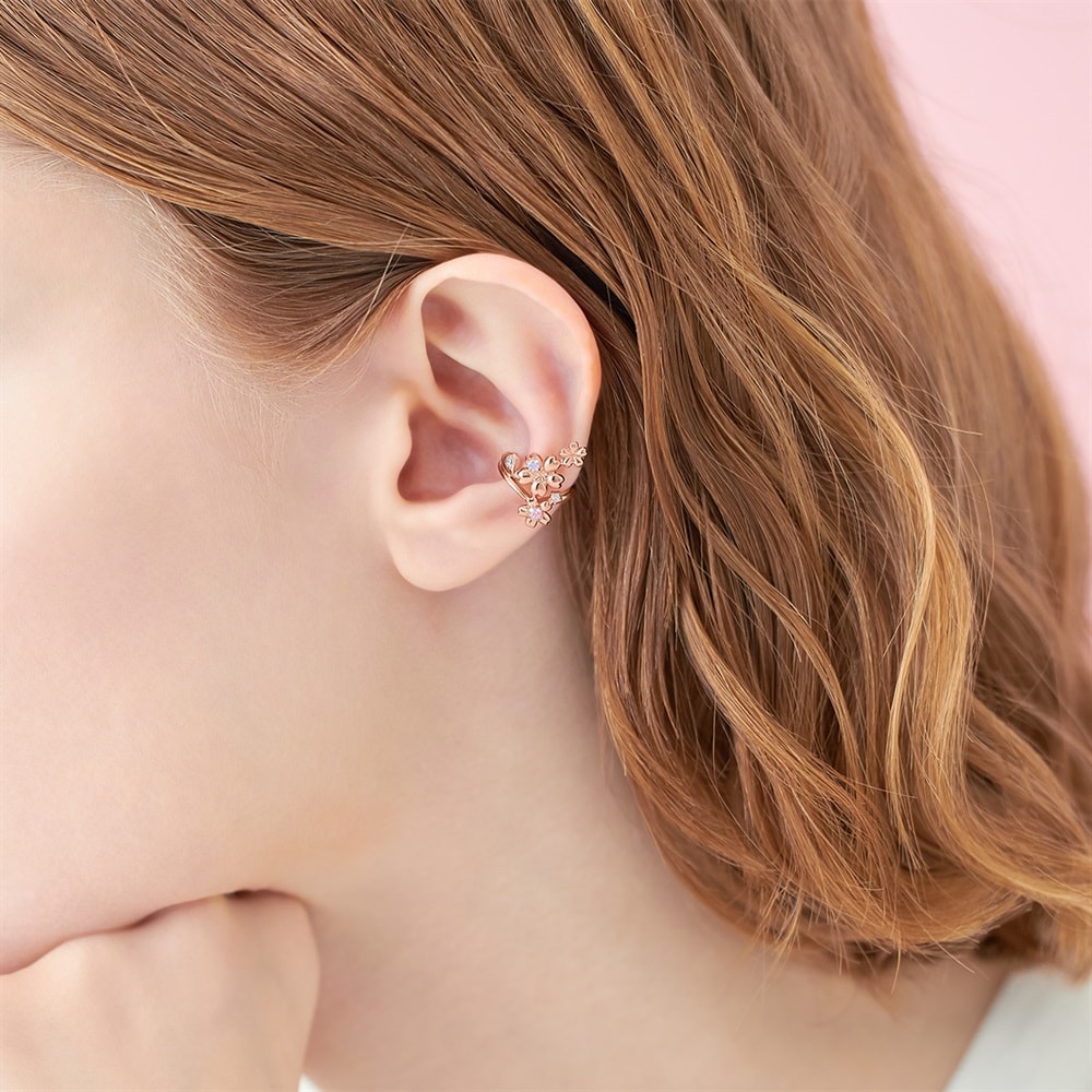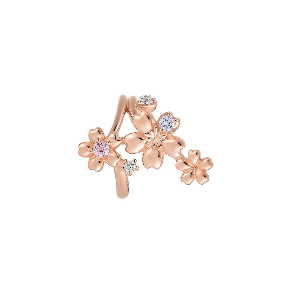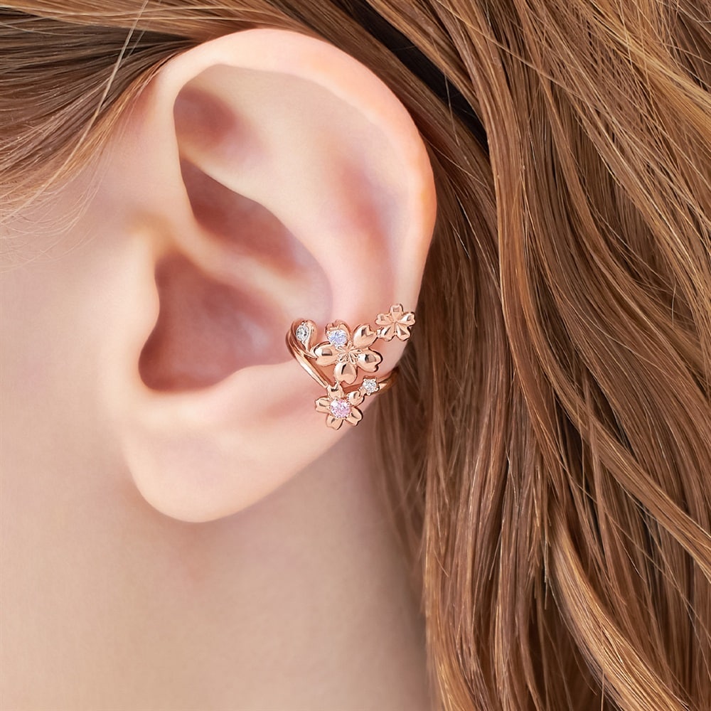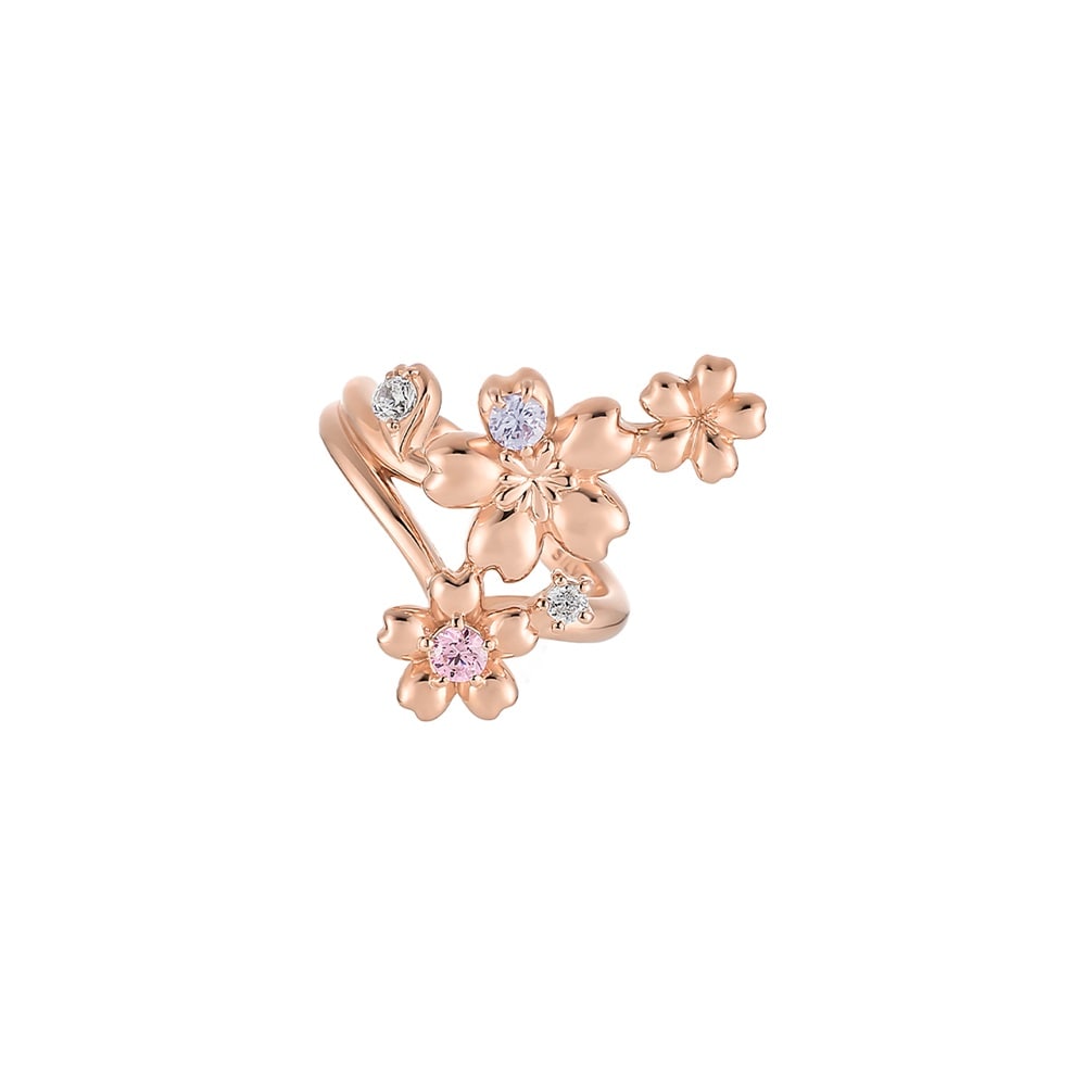 SAKURA Collection一覧はこちら >桜と空が重なり合う一瞬の情景に、春の想いを映した桜コレクション耳に寄り添う5枚花が存在感のあるイヤーカフ。可憐な花々が季節を身にまとうように耳元で咲き誇ります。ピンクやラベンダーカラーのストーンが夕暮れ空を想わせる、大人のかわいさを引き立てるデザインです。【予約購入特典 なくなり次第終了】こちらのジュエリーをご購入のお客さまに、Canal4℃オリジナルジュエリートレーをプレゼント。※ショッピングバッグ内にノベルティの画像が表示されていない場合、ノベルティのお取り扱いは終了しております。※先行予約枠は数に限りがございます。ご希望のジュエリーがお品切れの場合は通常販売をお待ちください。通常販売開始:1月22日(木)16時00分からメッセージカードの作成は、通常販売時のみとなります。