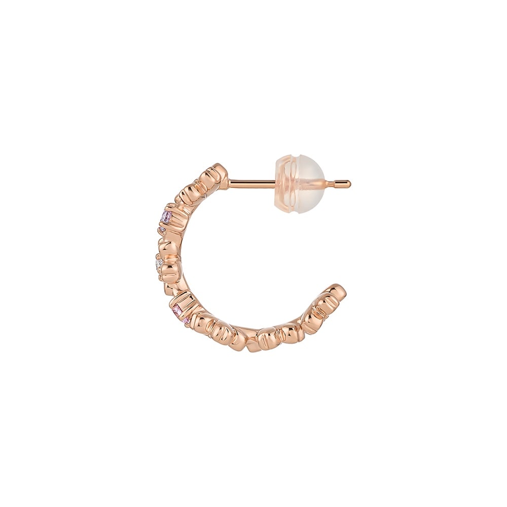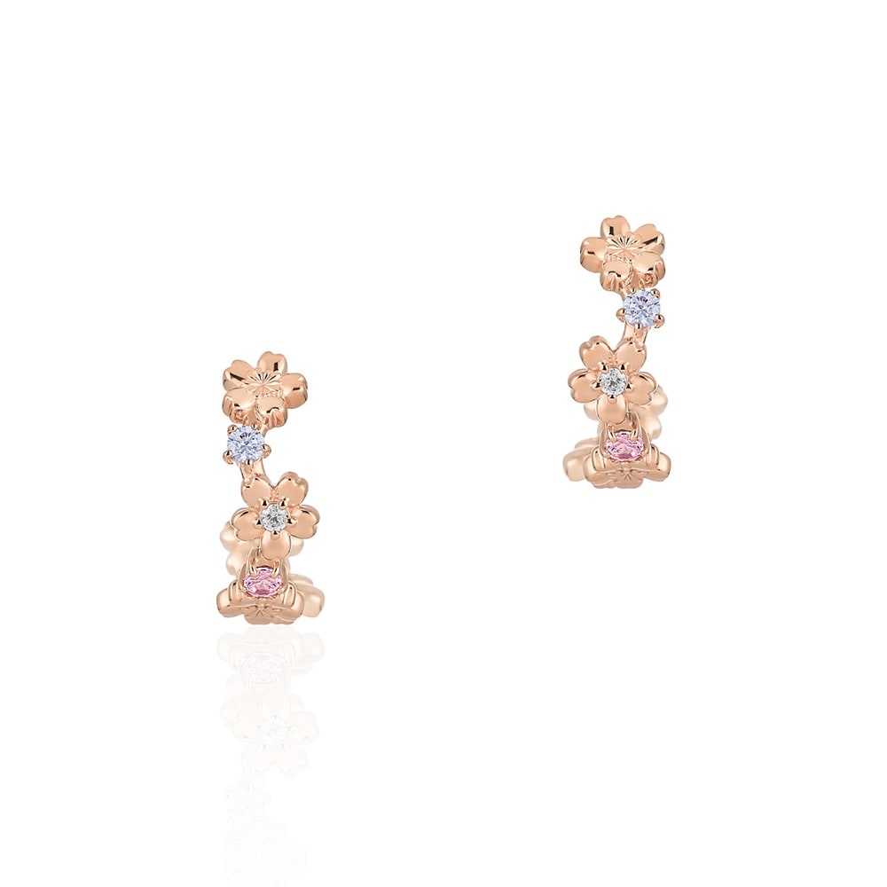 SAKURA Collection一覧はこちら >桜と空が重なり合う一瞬の情景に、春の想いを映した桜コレクション桜の5枚花が寄り添い咲く姿をイメージしたフープ風ピアス。ピンクやラベンダーカラーのストーンが夕暮れ空を想わせる、大人のかわいさを引き立てるデザインです。耳の裏側までほどこされた桜のデザインが華やかで存在感のある耳元を演出します。【予約購入特典 なくなり次第終了】こちらのジュエリーをご購入のお客さまに、Canal4℃オリジナルジュエリートレーをプレゼント。※ショッピングバッグ内にノベルティの画像が表示されていない場合、ノベルティのお取り扱いは終了しております。※先行予約枠は数に限りがございます。ご希望のジュエリーがお品切れの場合は通常販売をお待ちください。通常販売開始:1月22日(木)16時00分からメッセージカードの作成は、通常販売時のみとなります。