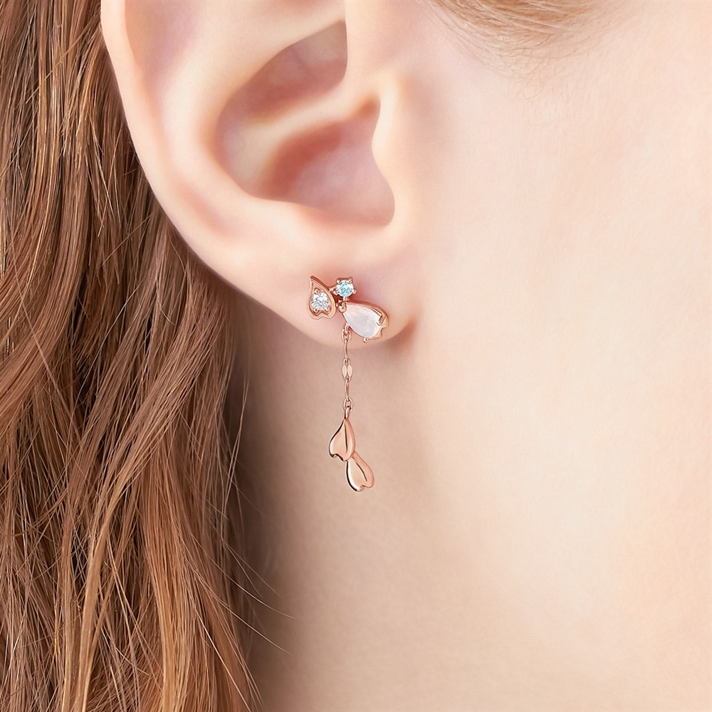 SAKURA Collection一覧はこちら >桜と空が重なり合う一瞬の情景に、春の想いを映した桜コレクション桜が舞う青空をイメージしたデザインのピアス。花びらに寄り添う、ブルーのキュービックジルコニアがアクセントに。花びらには優しいピンクのローズクォーツがみずみずしく輝きます。風に吹かれるように動くたび揺れるデザインチェーンが耳元にきらめきを添えます。シーンを選ばず身に着けやすい長さもポイントです。※天然石・天然素材を使用しているため、実際の色味や風合いが異なる場合がございます。【予約購入特典 なくなり次第終了】こちらのジュエリーをご購入のお客さまに、Canal4℃オリジナルジュエリートレーをプレゼント。※ショッピングバッグ内にノベルティの画像が表示されていない場合、ノベルティのお取り扱いは終了しております。※先行予約枠は数に限りがございます。ご希望のジュエリーがお品切れの場合は通常販売をお待ちください。通常販売開始:1月22日(木)16時00分からメッセージカードの作成は、通常販売時のみとなります。