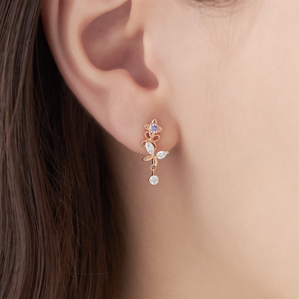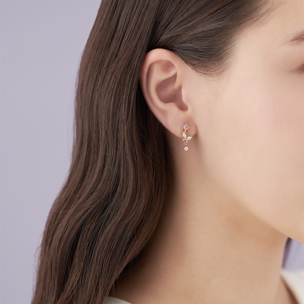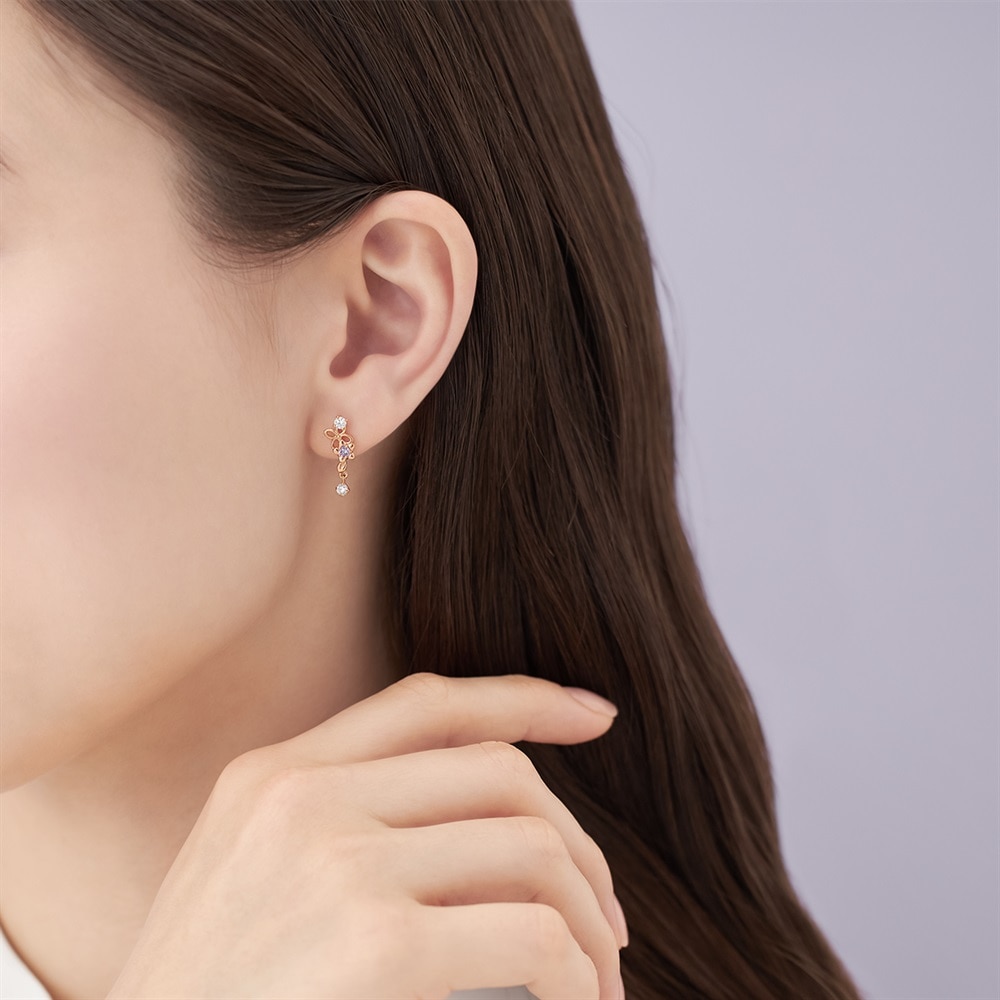 ふわりと香る春の便りが、新しい季節へ導いてくれる Spring Collection -Floral notes-春の訪れを告げるライラックと、飛躍のシンボルである蝶をモチーフにしたシリーズ。動くたびにストーンが揺れて顔周りのアクセントとなる、アシンメトリーなデザインのピアス。ふっくらとした花びらと、軽やかな透かしの表現を混ぜた、リズミカルなデザインがポイントです。ごく稀に咲く5枚の花びらの「ハッピーライラック」を忍ばせ、お守り代わりとしても身に着けられるアイテムです。【数量限定ケース付き】 なくなり次第終了※ショッピングバッグ内の画像が限定ケースではない場合、限定ケースのお取り扱いは終了しております。