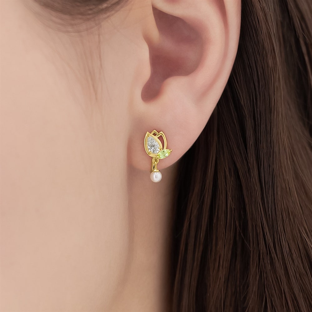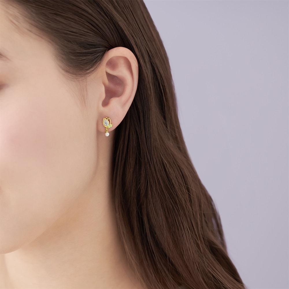 ふわりと香る春の便りが、新しい季節へ導いてくれる Spring Collection -Floral notes-春に凛と花を咲かせるチューリップをモチーフにしたシリーズ。やわらかな光沢のパールが揺れて顔周りのアクセントとなるイヤリング。花びらを華やかなストーンと透かしの表現でデザインし、軽やかな印象に仕上げています。チューリップの花言葉「想いやり」は、大切なひとへ、そして自分自身への優しさのお守りになるアイテムです。※天然石・天然素材を使用しているため、実際の色味や風合いが異なる場合がございます。【数量限定ケース付き】 なくなり次第終了※ショッピングバッグ内の画像が限定ケースではない場合、限定ケースのお取り扱いは終了しております。