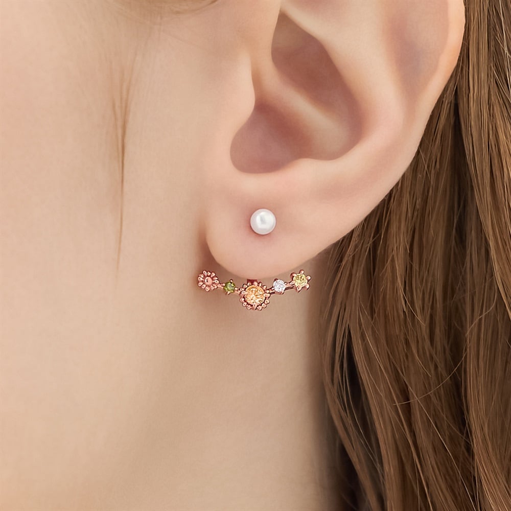ふわりと香る春の便りが、新しい季節へ導いてくれる Spring Collection -Floral notes-春を鮮やかに彩るガーベラの花々をモチーフにしたシリーズ。カラフルなカラーストーンとピンクゴールドカラーでガーベラの花畑を表現したピアス。耳たぶから花々が顔を覗かせる愛らしいデザインが魅力です。お花パーツを着けずにシンプルなパールピアスとしても身に着けられる2WAYアイテムです。ガーベラは「希望」「前向き」の花言葉を持ち、新しい始まりを迎えるご自身へのご褒美や、大切な方へのギフトにもおすすめです。※天然石・天然素材を使用しているため、実際の色味や風合いが異なる場合がございます。【数量限定ケース付き】 なくなり次第終了※ショッピングバッグ内の画像が限定ケースではない場合、限定ケースのお取り扱いは終了しております。