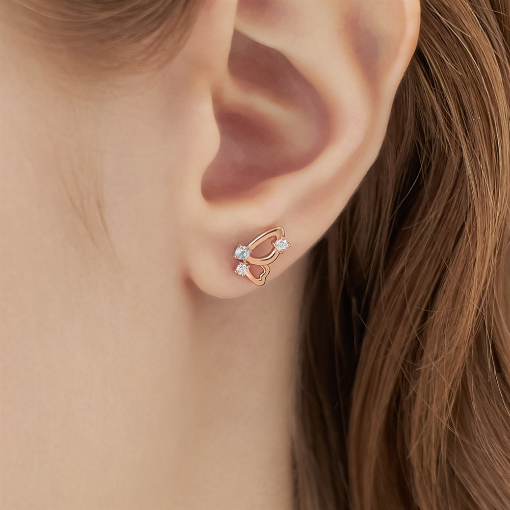 幸運の意味を持つ、3月の誕生石アクアマリンがポイントのバースデージュエリー。羽ばたくシーズンに向けた「飛躍」の意味を持つ蝶モチーフのネックレスです。2羽の蝶々が耳元に止まる、可愛らしいデザイン。やわらかなラインが描く抜け感で、軽やかに身に着けることができます。バースデーギフトやご自身用のパーソナルジュエリーとしておすすめです。※天然石・天然素材を使用しているため、実際の色味や風合いが異なる場合がございます。