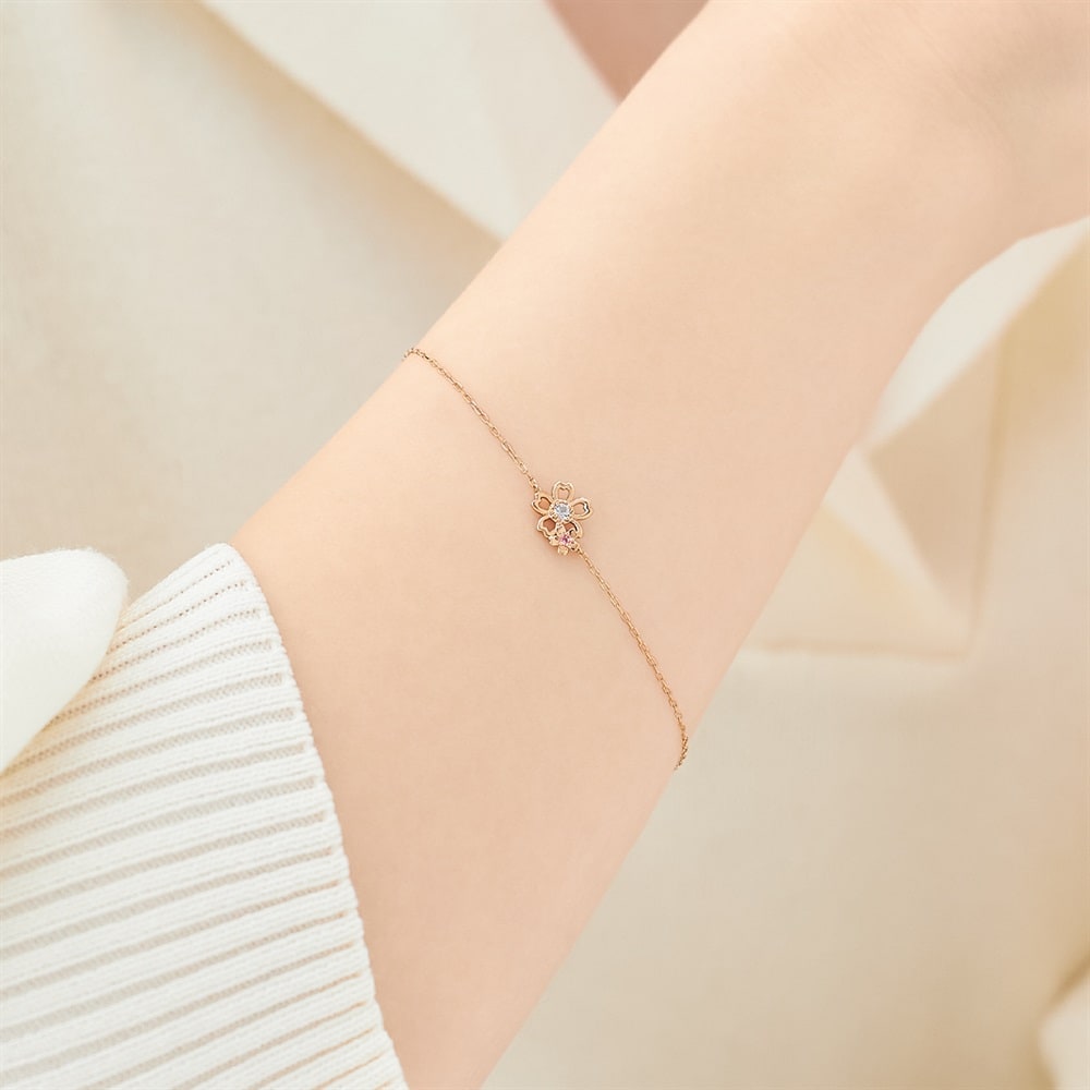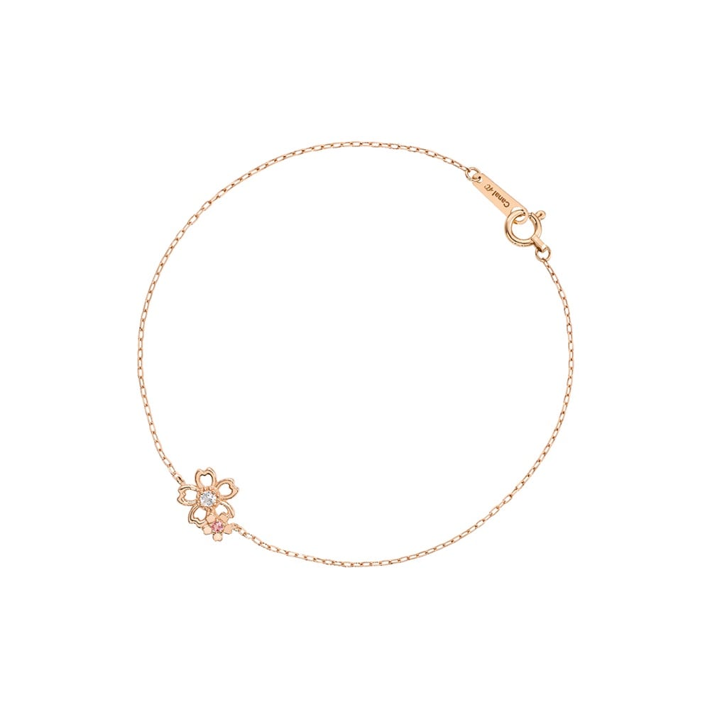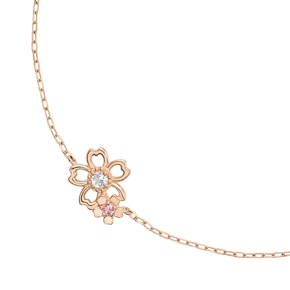 SAKURA Collection一覧はこちら >桜と空が重なり合う一瞬の情景に、春の想いを映した桜コレクション花びらが風に舞うように重なり合う軽やかなブレスレット。透かしの桜に寄り添う小さな桜は、トルマリン(ピンク)を使い、天然石の美しいカラーが輝きます。K10ピンクゴールドの素材で肌馴染みがよく上品なブレスレットです。※天然石・天然素材を使用しているため、実際の色味や風合いが異なる場合がございます。【予約購入特典 なくなり次第終了】こちらのジュエリーをご購入のお客さまに、Canal4℃オリジナルジュエリートレーをプレゼント。※ショッピングバッグ内にノベルティの画像が表示されていない場合、ノベルティのお取り扱いは終了しております。※先行予約枠は数に限りがございます。ご希望のジュエリーがお品切れの場合は通常販売をお待ちください。通常販売開始:1月22日(木)16時00分からメッセージカードの作成は、通常販売時のみとなります。