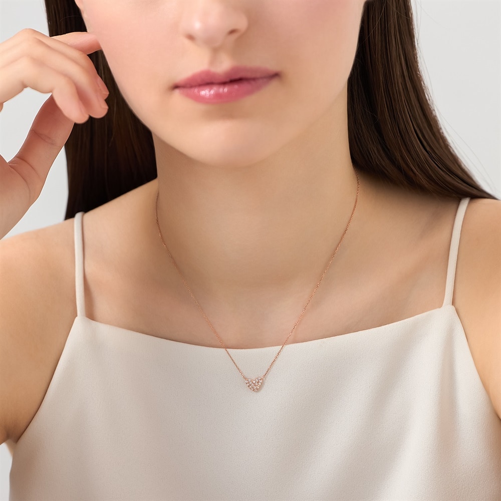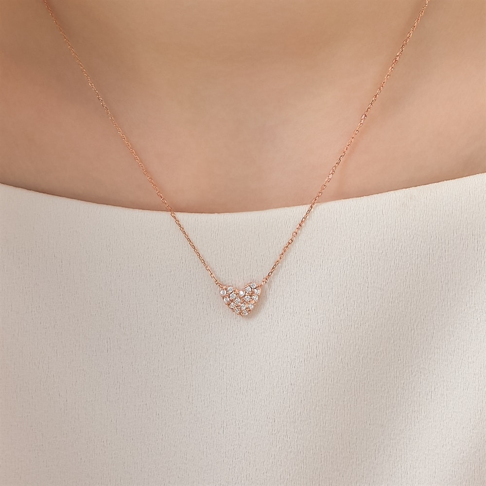 キュービックジルコニアを敷き詰めたパヴェ面と、ピンクゴールドカラーの鏡面が使えるリバーシブルネックレス。繊細な石ぞろえがハートのやわらかなフォルムに豊かな光の表情を与えます。ハートは「愛情」「自己肯定」「親密さ」を象徴します。リバーシブルなので装いに合わせて表情を切り替えられ、身に着けると首元に上品な華やかさを添えます。