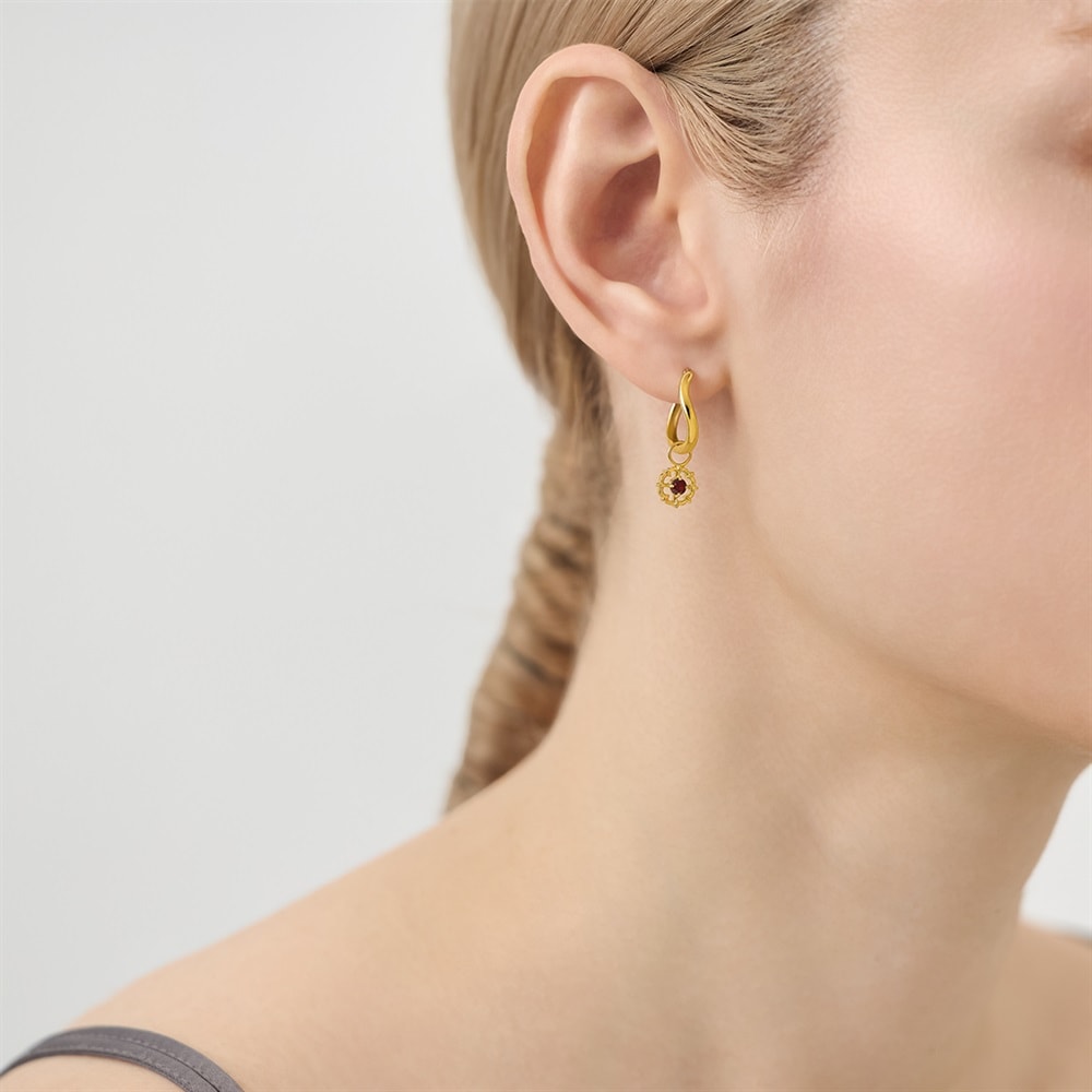 はみがき、着替え、今日のピアス -EARFLOW-自分仕様にカスタマイズ 選ぶ楽しさをその手に-CUSTOM FIT-ピアスに華を添える、丸みのある花形チャーム。ガーネットの温かなカラーが顔周りのアクセントとなるデザイン。1月の誕生石であるガーネットは愛情や情熱を象徴し、身に着けるたび自信をプラスし、お守りとしてもぴったりです。フープのピアスやイヤリングに通してお使いいただけるアイテムです。※天然石・天然素材を使用しているため、実際の色味や風合いが異なる場合がございます。【同コレクションのアイテムはこちら】【コーディネートにおすすめのピアス】 品番:152624250064 品番:152624251125