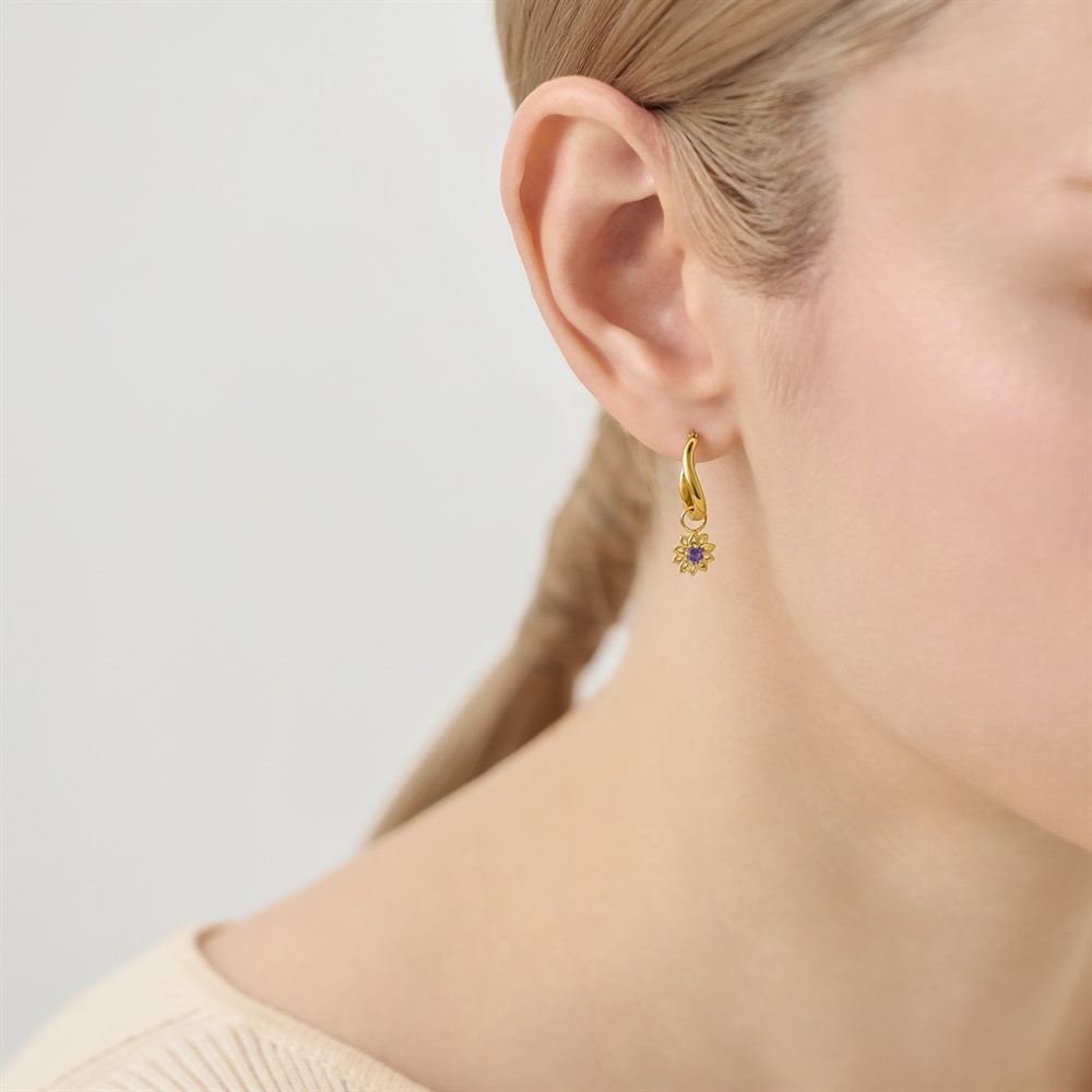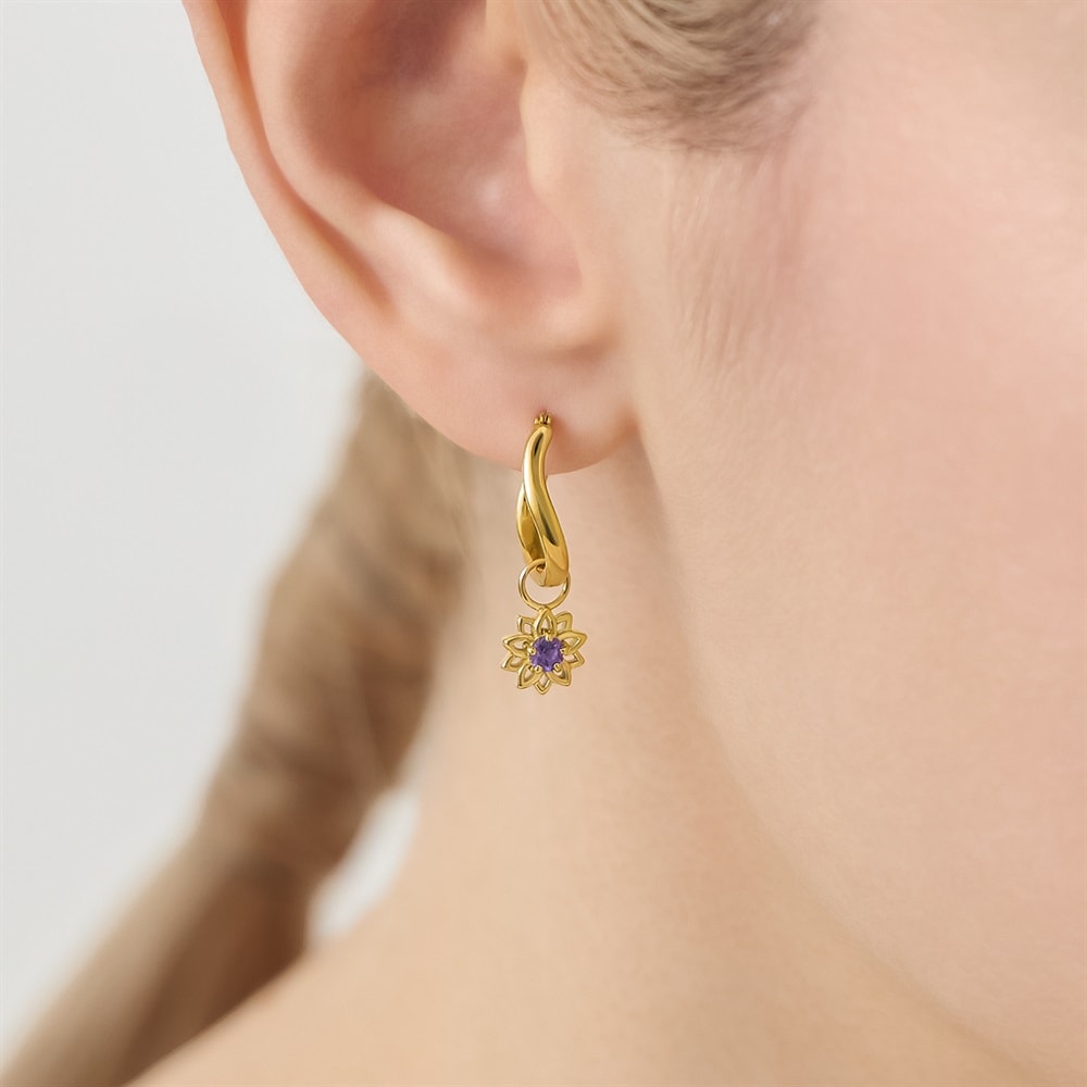 はみがき、着替え、今日のピアス -EARFLOW-自分仕様にカスタマイズ 選ぶ楽しさをその手に-CUSTOM FIT-ピアスに華を添える、エレガントな花形チャーム。アメシストが顔周りを引き締め、オンオフ問わず使いやすいデザインです。2月の誕生石であるアメシストは心の平和や誠実を象徴し、身に着けるたびに冷静さをもたらし、お守りとしてもぴったりです。フープのピアスやイヤリングに通してお使いいただけるアイテムです。※天然石・天然素材を使用しているため、実際の色味や風合いが異なる場合がございます。【同コレクションのアイテムはこちら】【コーディネートにおすすめのピアス】 品番:152624250064 品番:152624251125