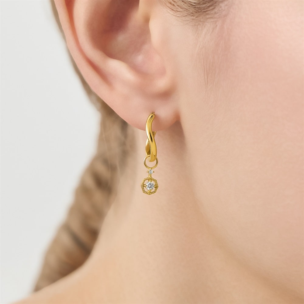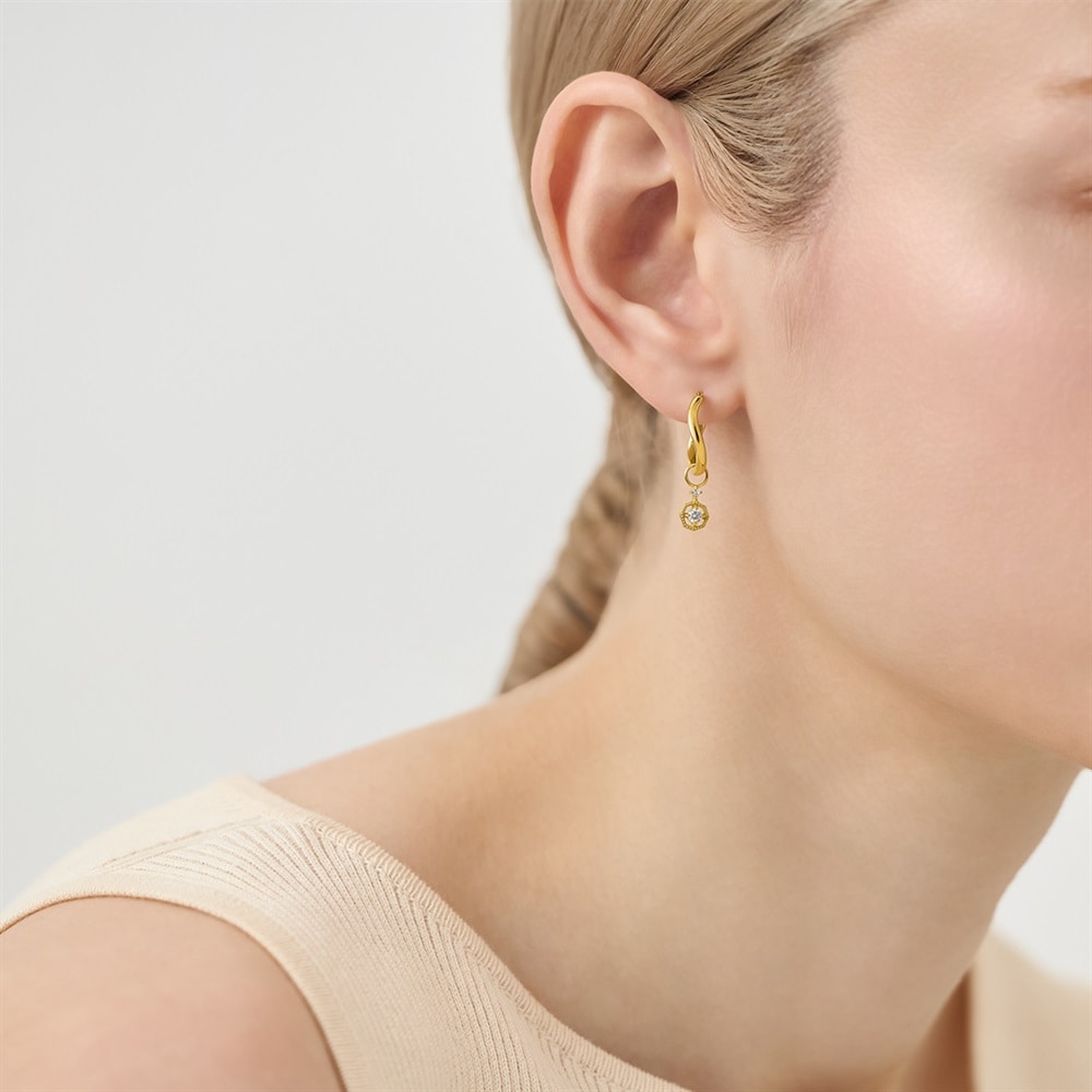はみがき、着替え、今日のピアス -EARFLOW-自分仕様にカスタマイズ 選ぶ楽しさをその手に-CUSTOM FIT-ミル打ちのフレームにダイヤモンドがきらめき、ホワイト・トパーズが華奢に留まったピアスチャーム。上品な輝きで顔周りをさり気なく華やかに演出します。4月の誕生石であるダイヤモンドは永遠の絆を象徴し、お守りとしてもぴったりです。フープのピアスやイヤリングに通してお使いいただけるアイテムです。※天然石・天然素材を使用しているため、実際の色味や風合いが異なる場合がございます。【同コレクションのアイテムはこちら】【コーディネートにおすすめのピアス】 品番:152624250064 品番:152624251125