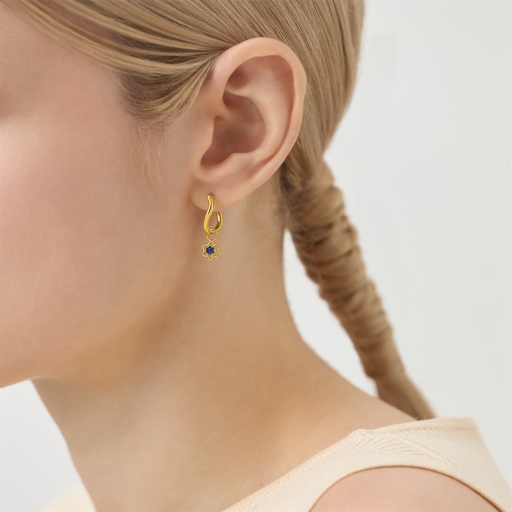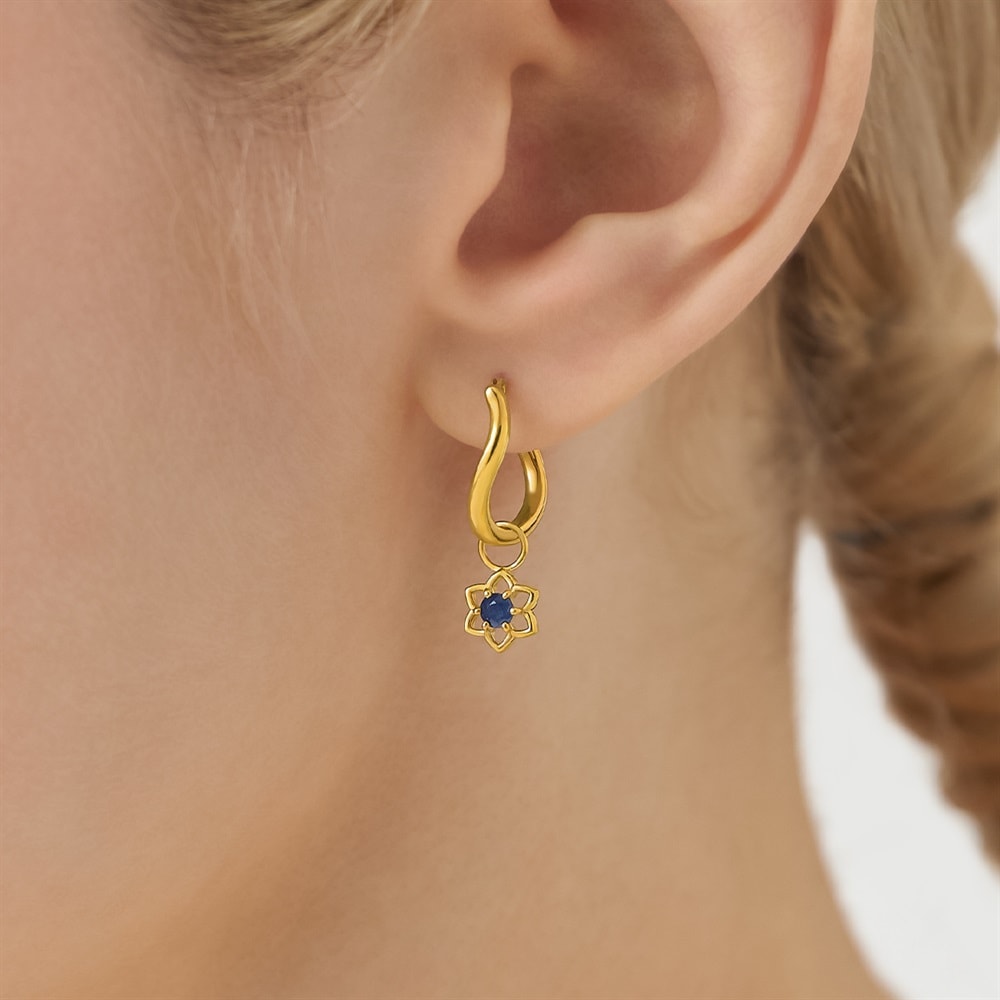 はみがき、着替え、今日のピアス -EARFLOW-自分仕様にカスタマイズ 選ぶ楽しさをその手に-CUSTOM FIT-星形の花を思わせる繊細なフォルムに澄んだサファイアがきらめくピアスチャーム。顔周りに知的で洗練された輝きを添えます。9月の誕生石であるサファイアは誠実さや慈愛を象徴し、身に着けるだけで凛とした印象になります。フープのピアスやイヤリングに通してお使いいただけるアイテムです。※天然石・天然素材を使用しているため、実際の色味や風合いが異なる場合がございます。【同コレクションのアイテムはこちら】【コーディネートにおすすめのピアス】 品番:152624250064 品番:152624251125
