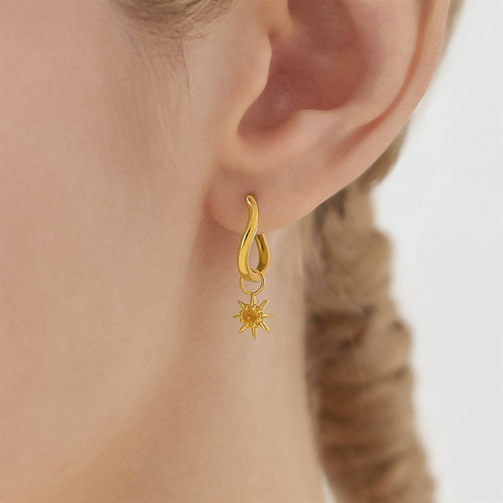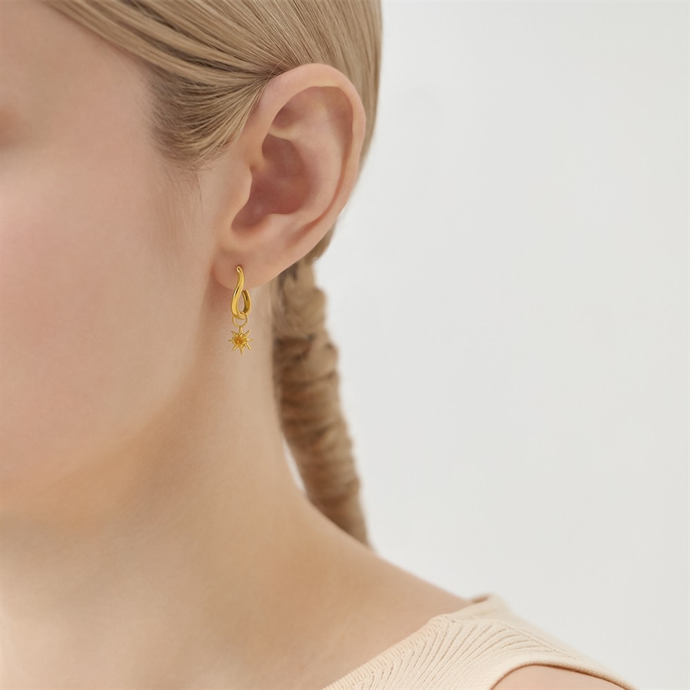 はみがき、着替え、今日のピアス -EARFLOW-自分仕様にカスタマイズ 選ぶ楽しさをその手に-CUSTOM FIT-星形の鋭いシルエットに温かなシトリンがきらめくピアスチャーム。太陽のような光が顔色を明るく見せ、日常に活力を与えます。11月の誕生石であるシトリンは希望や成功を象徴し、前向きな気持ちを後押しします。フープのピアスやイヤリングに通してお使いいただけるアイテムです。※天然石・天然素材を使用しているため、実際の色味や風合いが異なる場合がございます。【同コレクションのアイテムはこちら】【コーディネートにおすすめのピアス】 品番:152624250064 品番:152624251125