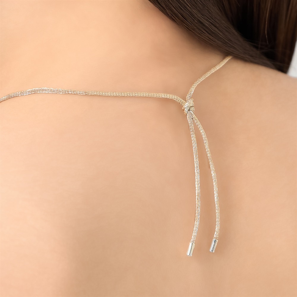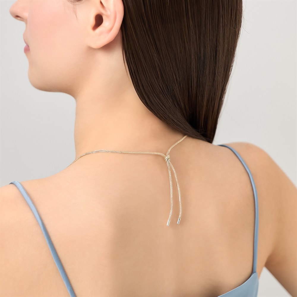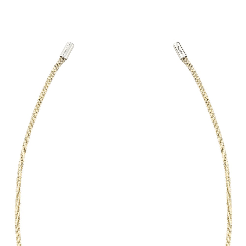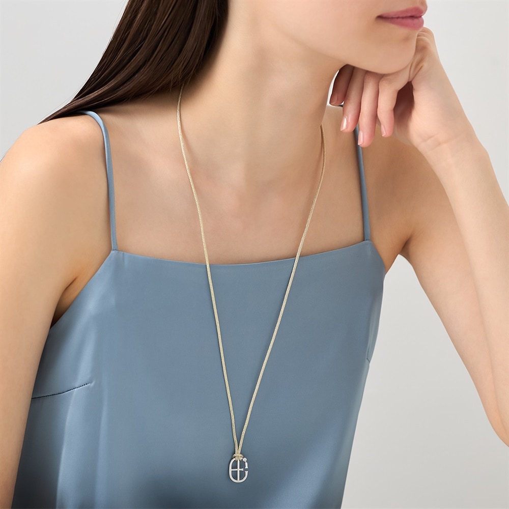CANAL 4℃のシンボルマークを日常に寄り添うジュエリーとして表現したコレクション。アイボリーのコードに、シンボルマークをモチーフにしたミニマルなトップを合わせたネックレス。トップにさり気なく添えたキュービックジルコニアが、上品な輝きを放ちます。左右に引っ張ってお好みの長さに調整できるため、チョーカーのように短く着けたり、ロングネックレスとして楽しんだりと、スタイリングの幅が広がります。ジェンダーレスなデザインで、カジュアルなスタイリングのアクセントにおすすめです。【同コレクションのアイテムはこちら】